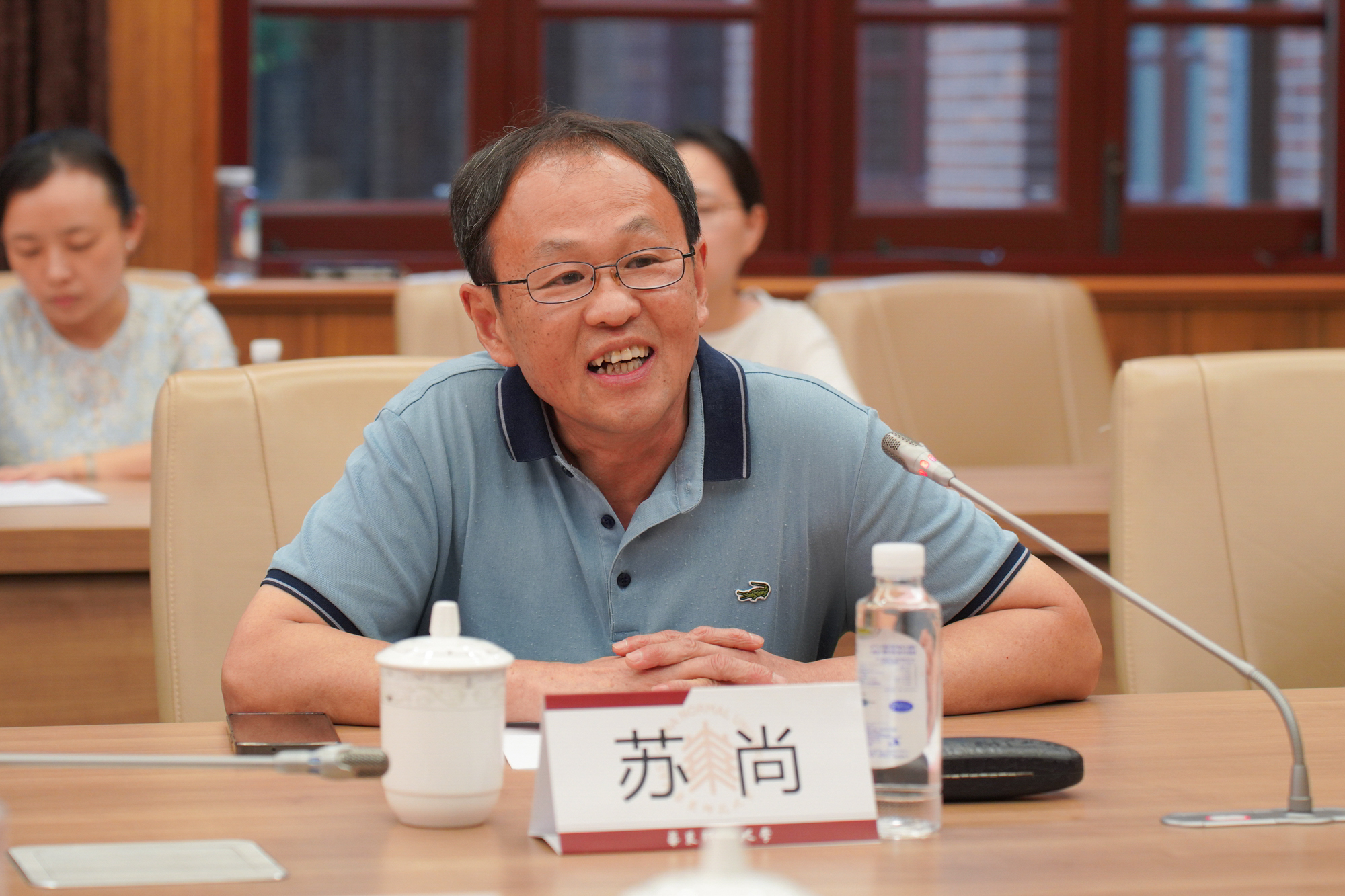 银龄教师代表苏尚介绍了自己在中国石油大学(北京)克拉玛依分校的支教情况和体会。苏尚老师在完成自己应承担的课程教学外,还应学生需求额外开设了两门选修课,并积极参加学校的各种党团活动、讲授党课等,他的努力和奉献得到了受援学校、师生的高度认可。