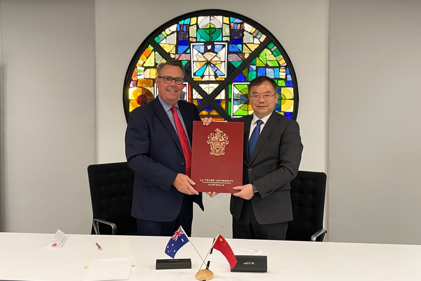 之后,代表团前往墨尔本,对澳大利亚乐卓博大学进行访问,该校校长John Dewar、外事副校长Amalia Di Iorio亲切接待了代表团一行,该校教务长Rob Pike、分管研究生教育的副校长Chris Pakes以及人文与社科学院、商学院代表参加座谈。双方回顾了两校近40载的合作伙伴关系,共同展望了未来在更多学科领域进行跨学科合作,利用卓越学术服务和解决社会难题的共同愿景。随后,双方还就师生交流交换、联合出版方面深入交换了意见。会上,双方续签了两校学生交换协议。