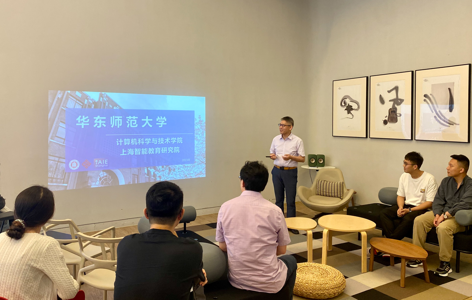在香港科技大学,代表团一行与香港科技大学首席副校长郭毅可、协理副校长(教学)冯志雄、教育创新中心主任Sean MCMINN等举行了座谈。周爱民介绍了计算机科学与技术学院以及上海智能教育研究院的基本情况,并详细汇报了教育大模型领域的研究方案。郭毅可对研究院短短几年来取得的成就表示赞赏,并就智能时代“未来教育”的发展方向问题与代表团一行展开了深入讨论。双方就智能教育领域的进一步科研合作达成共识。