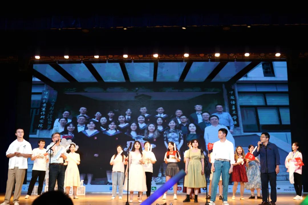 19级“元化班”学子在中文系毕业晚会上和汤拥华老师、孙尧天老师一起合唱《光阴的故事》