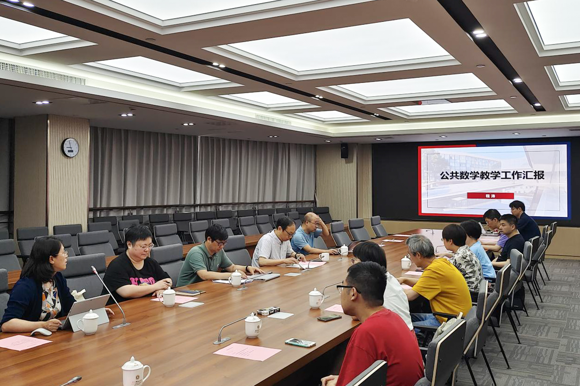 数学科学学院副院长程涛汇报了公共数学教学情况。他介绍了本学期施行的教学改革举措:习题课试点、案例课试点、教考分离、公共数学大纲修订、智慧教室建设等工作,并结合在兄弟高校的调研交流情况和阶段性成效分析,提出推进过程中发现的问题和下一步工作方案。