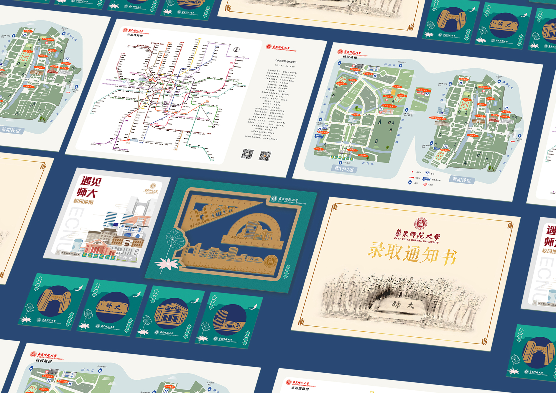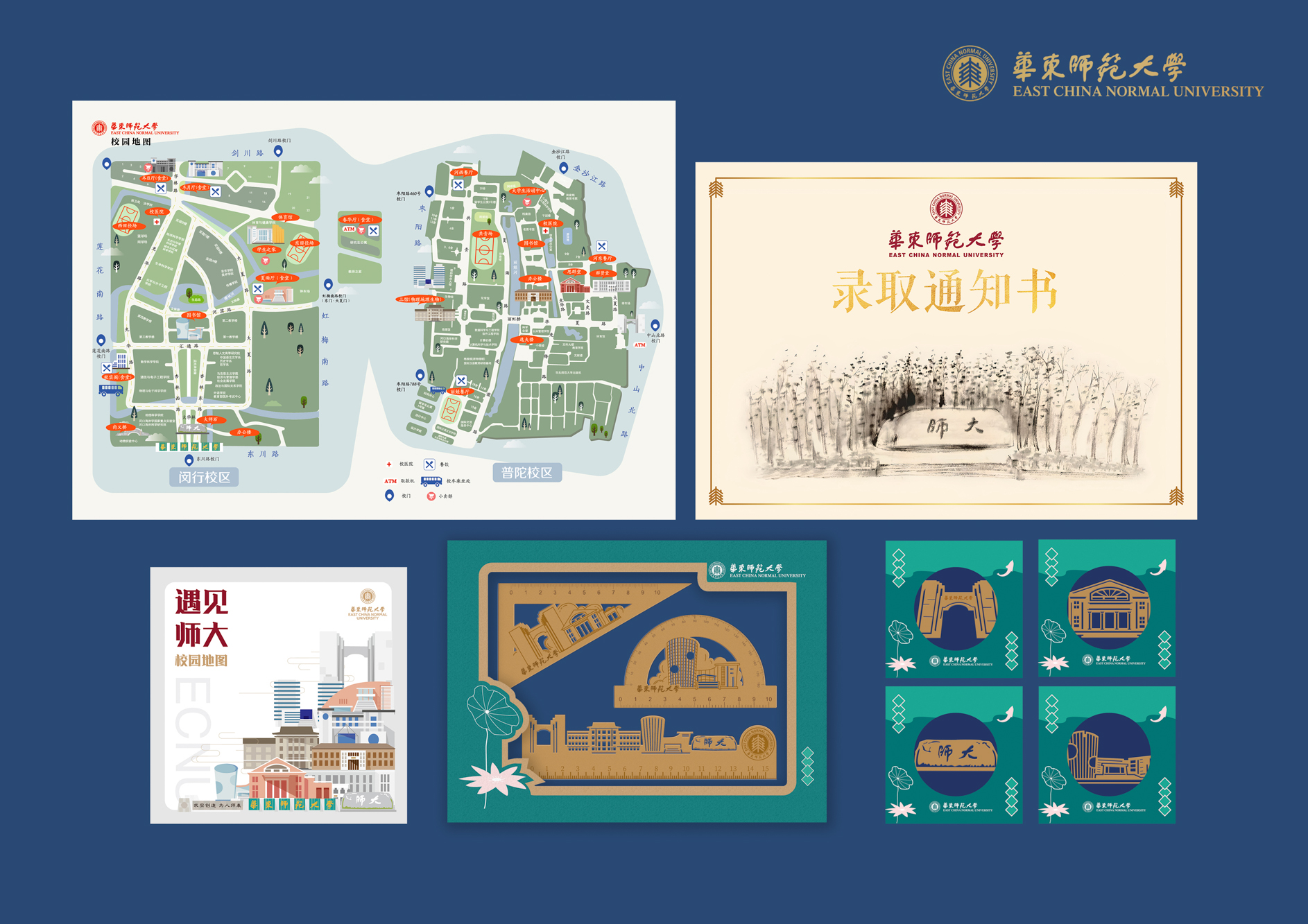 ▷铜尺:普陀校区校门、思群堂,闵行校区图书馆,两校区标志性建筑3款