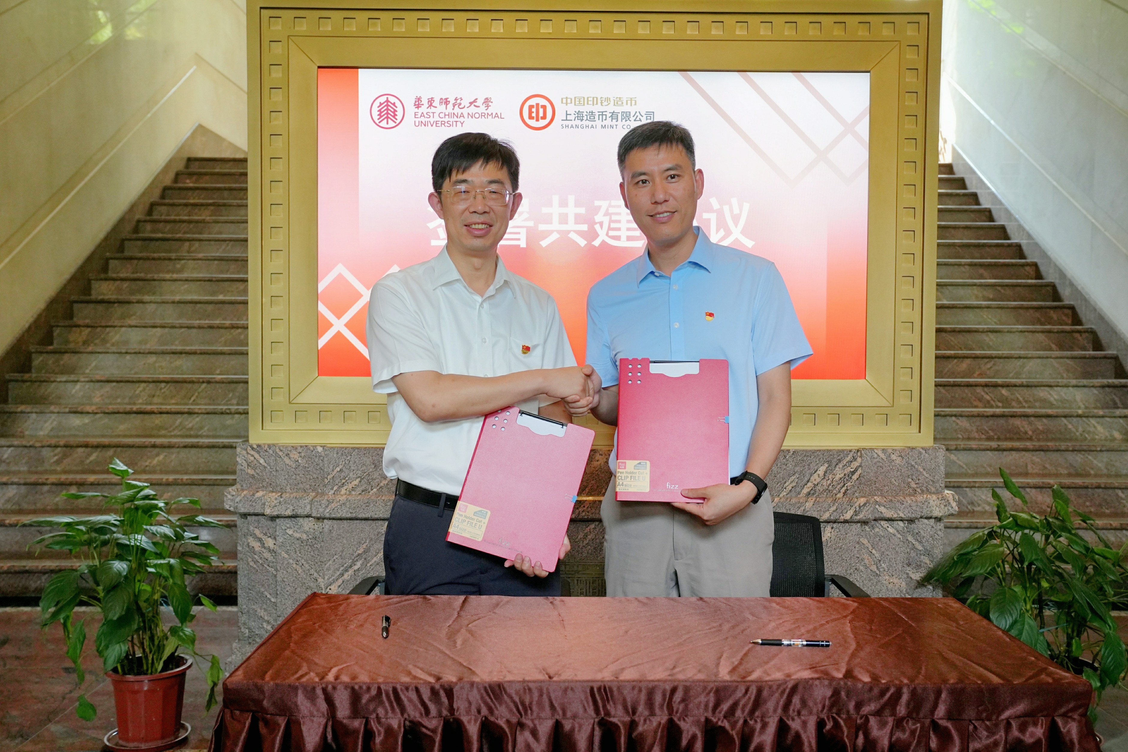 活动现场,上币公司党委书记刘科、校党委副书记孟钟捷共同签署了“大思政课”建设合作共建协议。上币公司副总经理袁展宏、设计学院党委书记俞世恩一同手打共建纪念章。纪念章正反面分别印有完美网页版校徽、上海造币有限公司标识LOGO,双方合作共建正式启动。