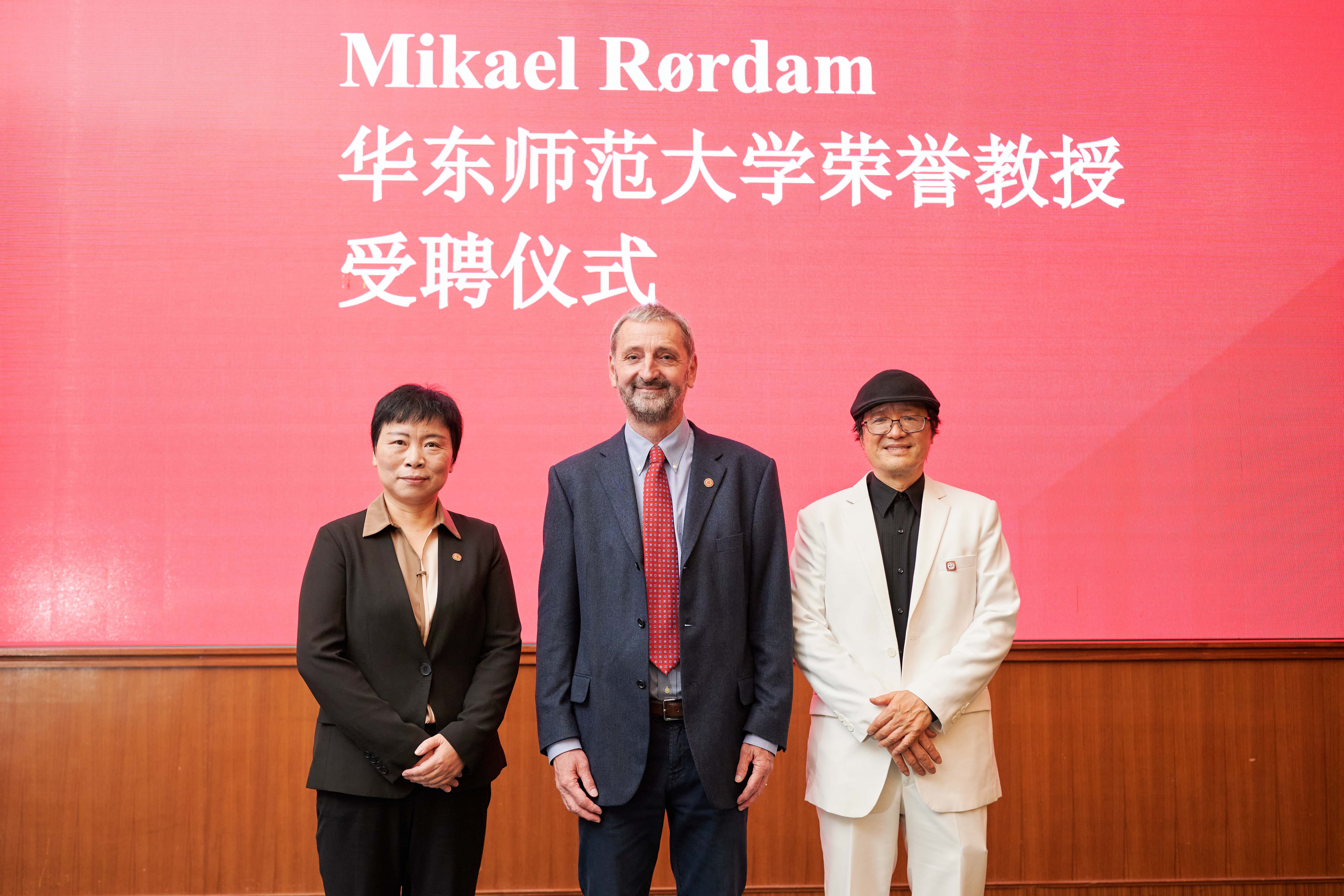Mikael Rørdam教授与校党委副书记杨昌利、前沿科学奖获得者林华新教授合影