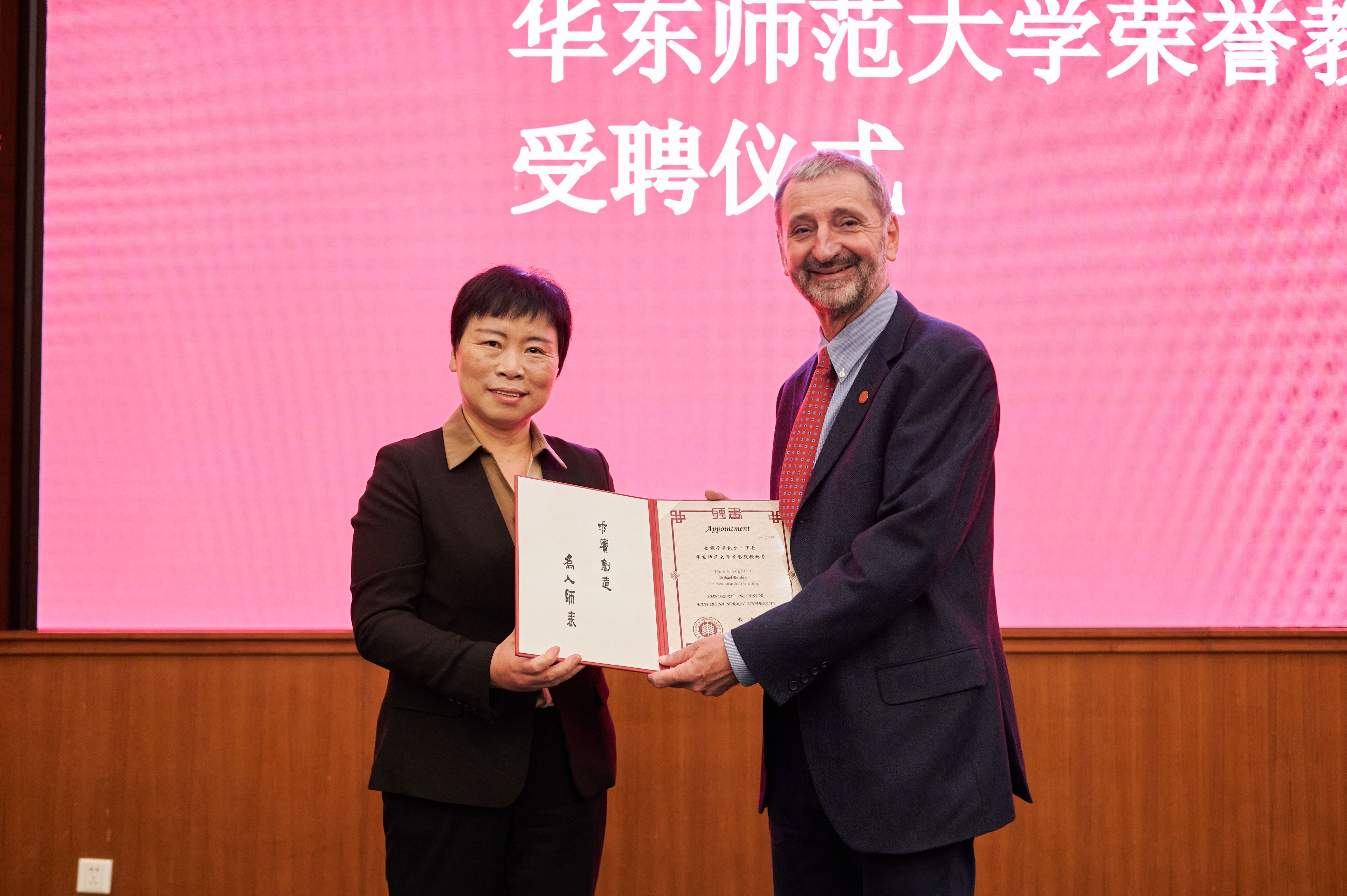 校党委副书记杨昌利为Mikael Rørdam教授颁发完美(中国)官方荣誉教授聘书