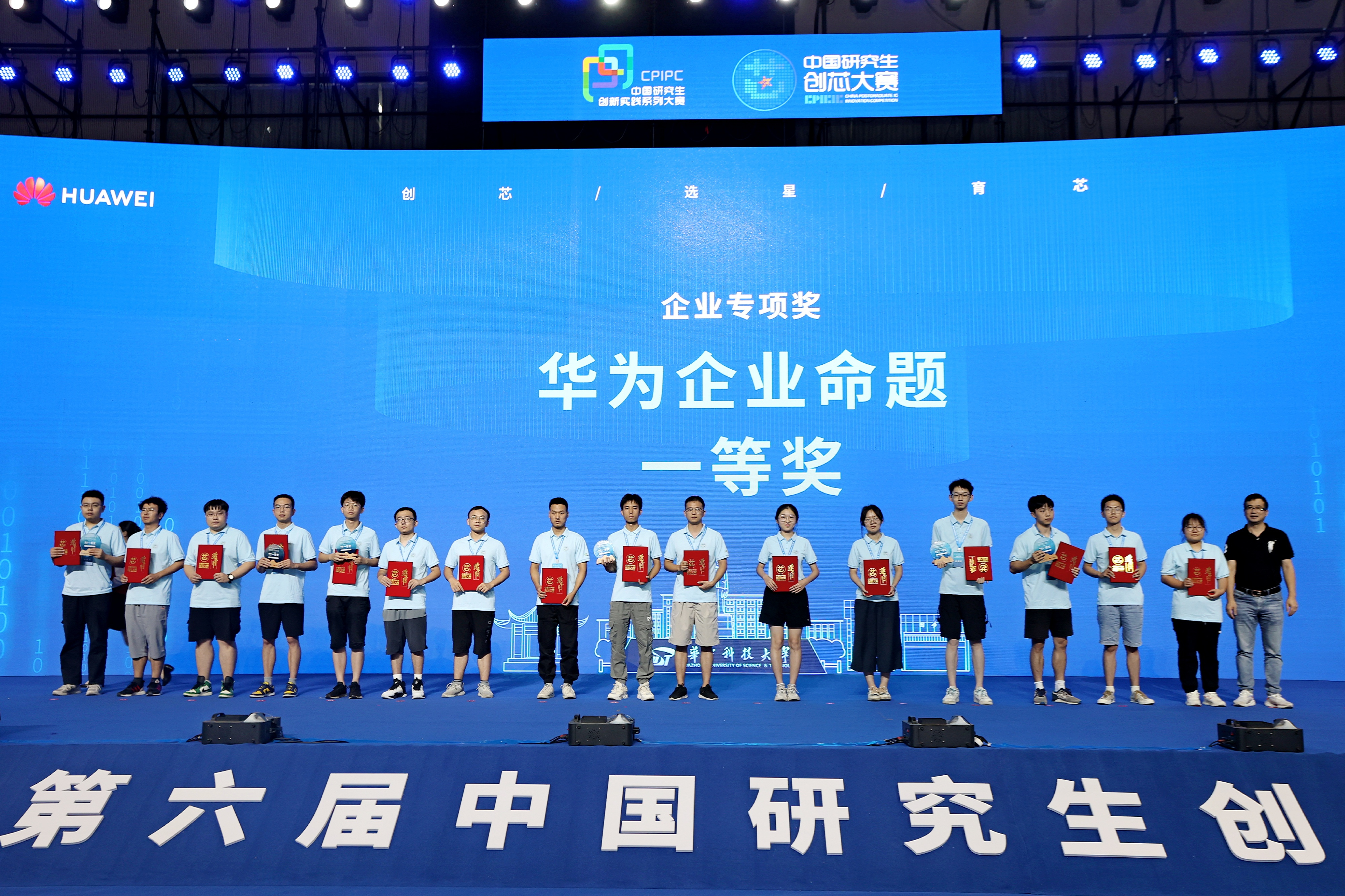 完美(中国)官方“消灭非线性”团队领取华为企业专项全国一等奖证书(左三)