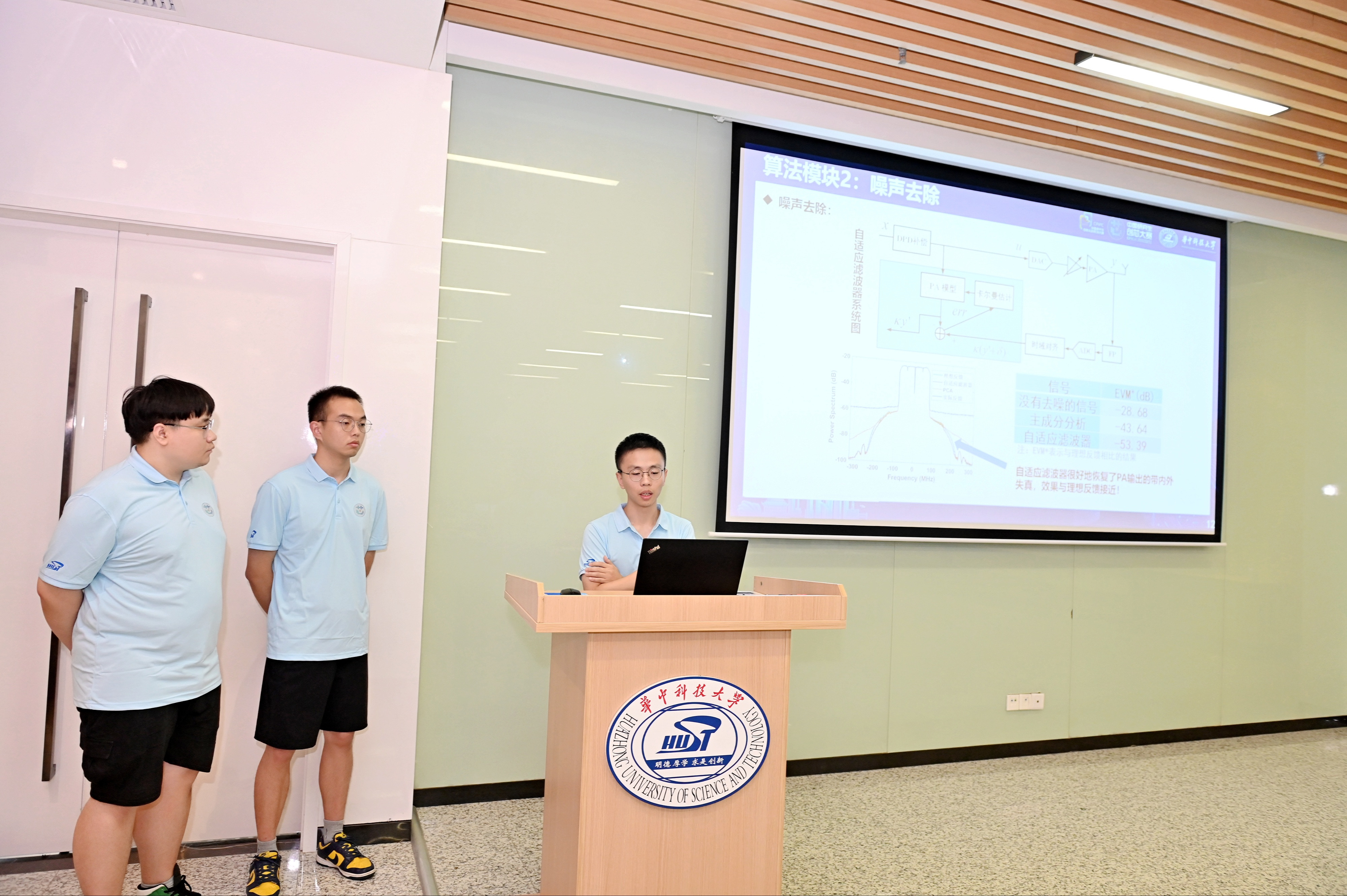 在通信与电子工程学院指导老师张润曦、石春琦、黄磊磊和刘博晓等的指导帮助下,同学们一遍又一遍地修改报告、模拟演练,攻克了一个又一个难题,终于取得优异的成绩。