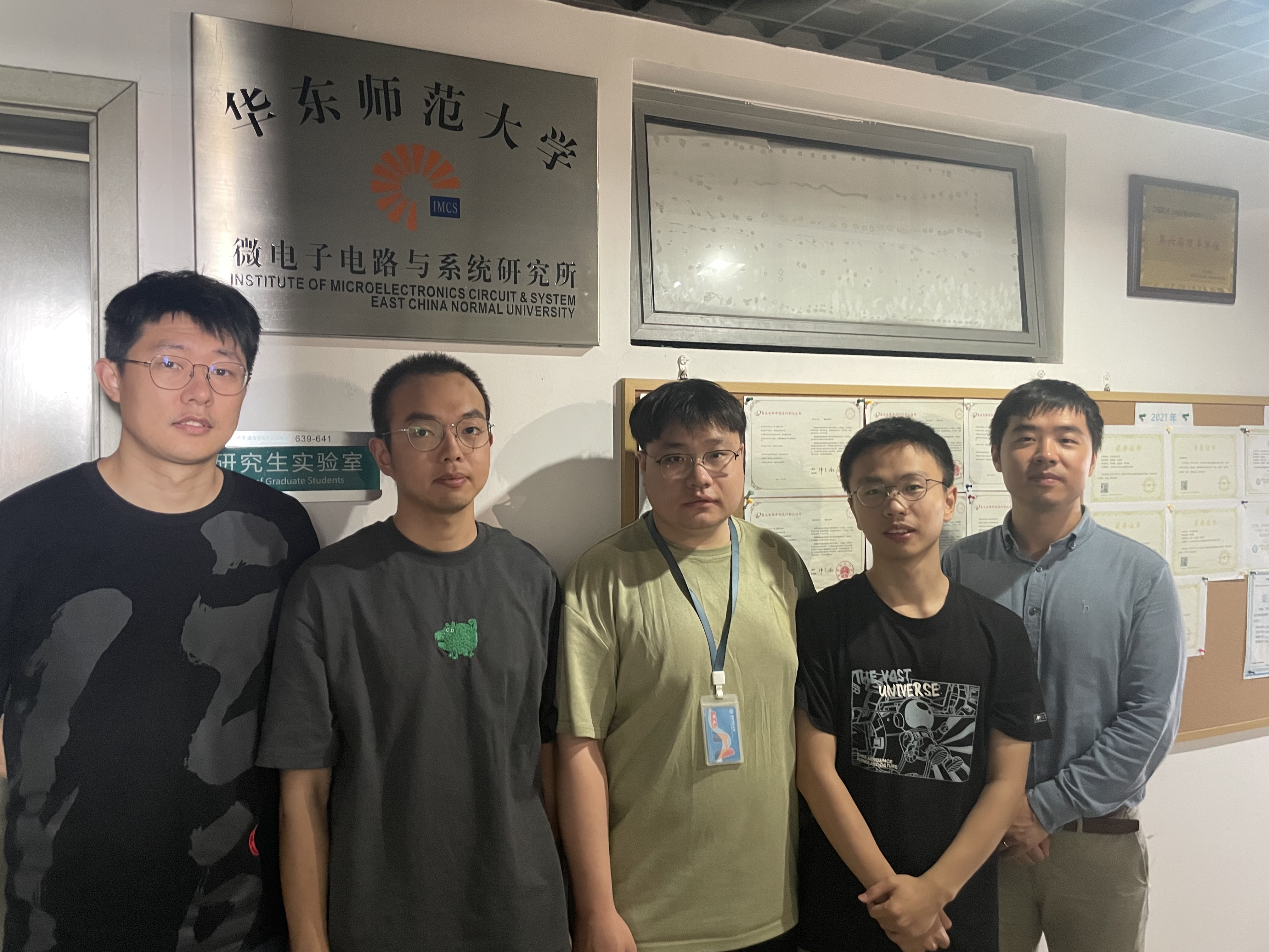 左起:黄磊磊老师、徐源、张振宇、谢旺东(队长)、刘博晓老师