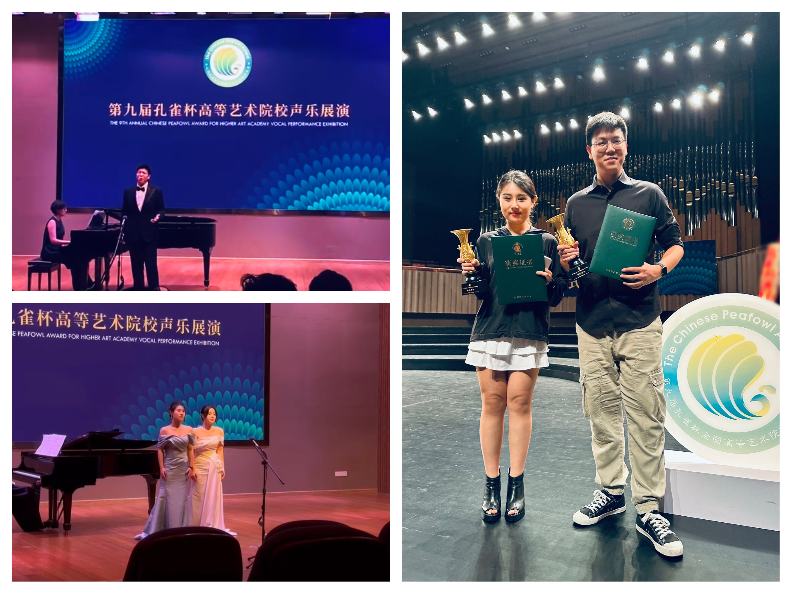 近日,第九届孔雀杯全国高等艺术院校声乐展演及交流活动在杭州浙江音乐学院举行。孔雀杯是由中国声乐家协会、四十多所高等艺术院校联合发起举办的大规模、高层次的高等艺术院校声乐展演和学术交流的品牌活动,也是全国唯一常设的声乐综合性大奖,是全国高等艺术院校最高奖之一。