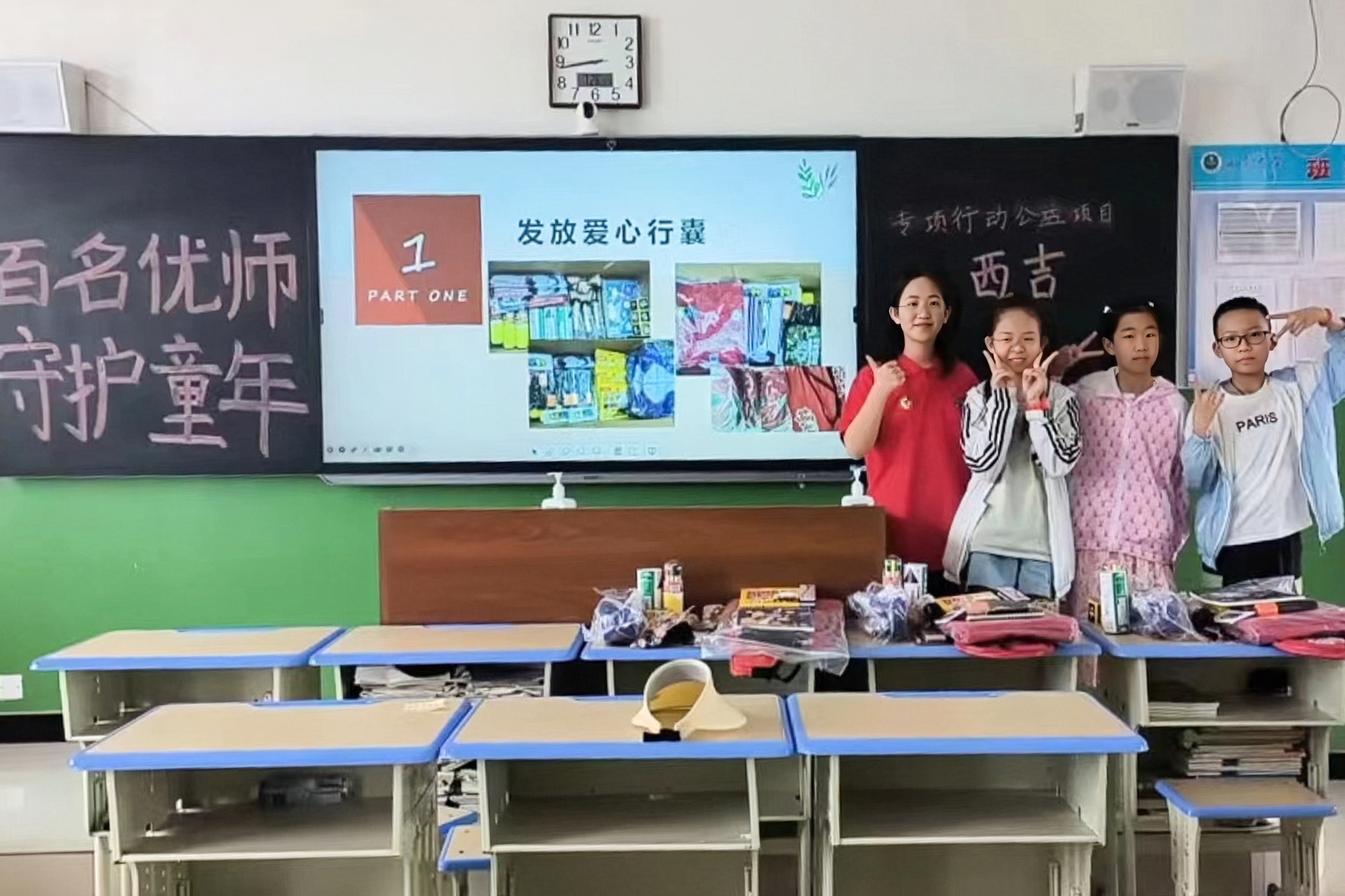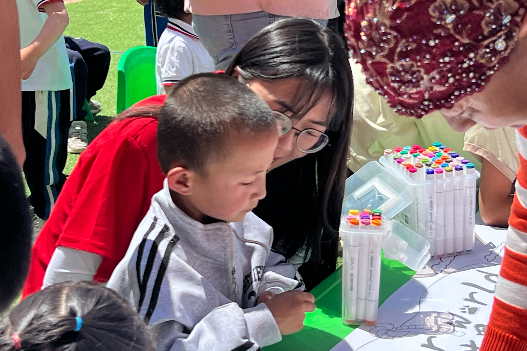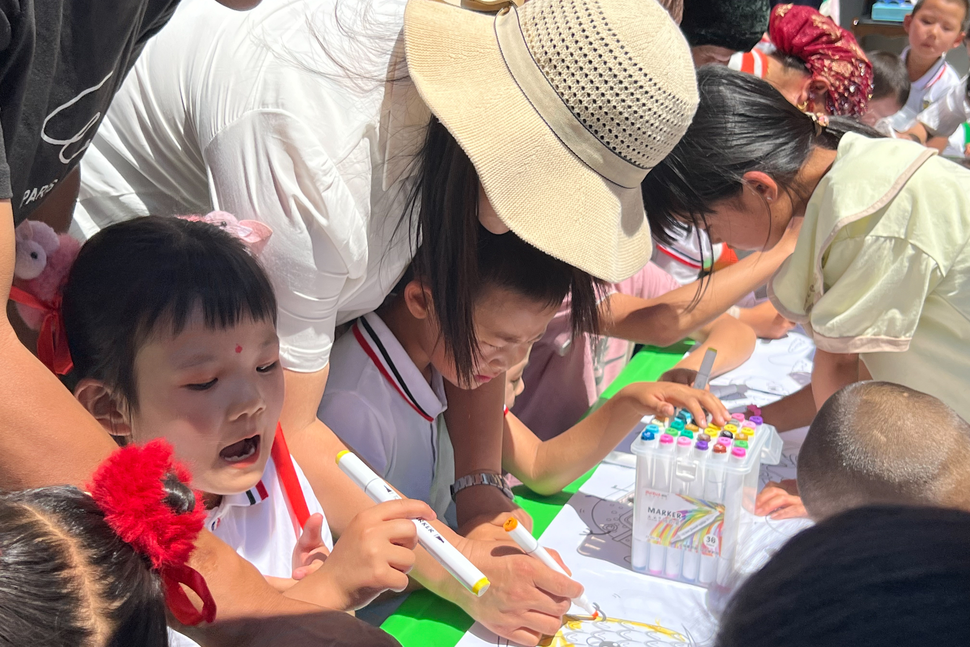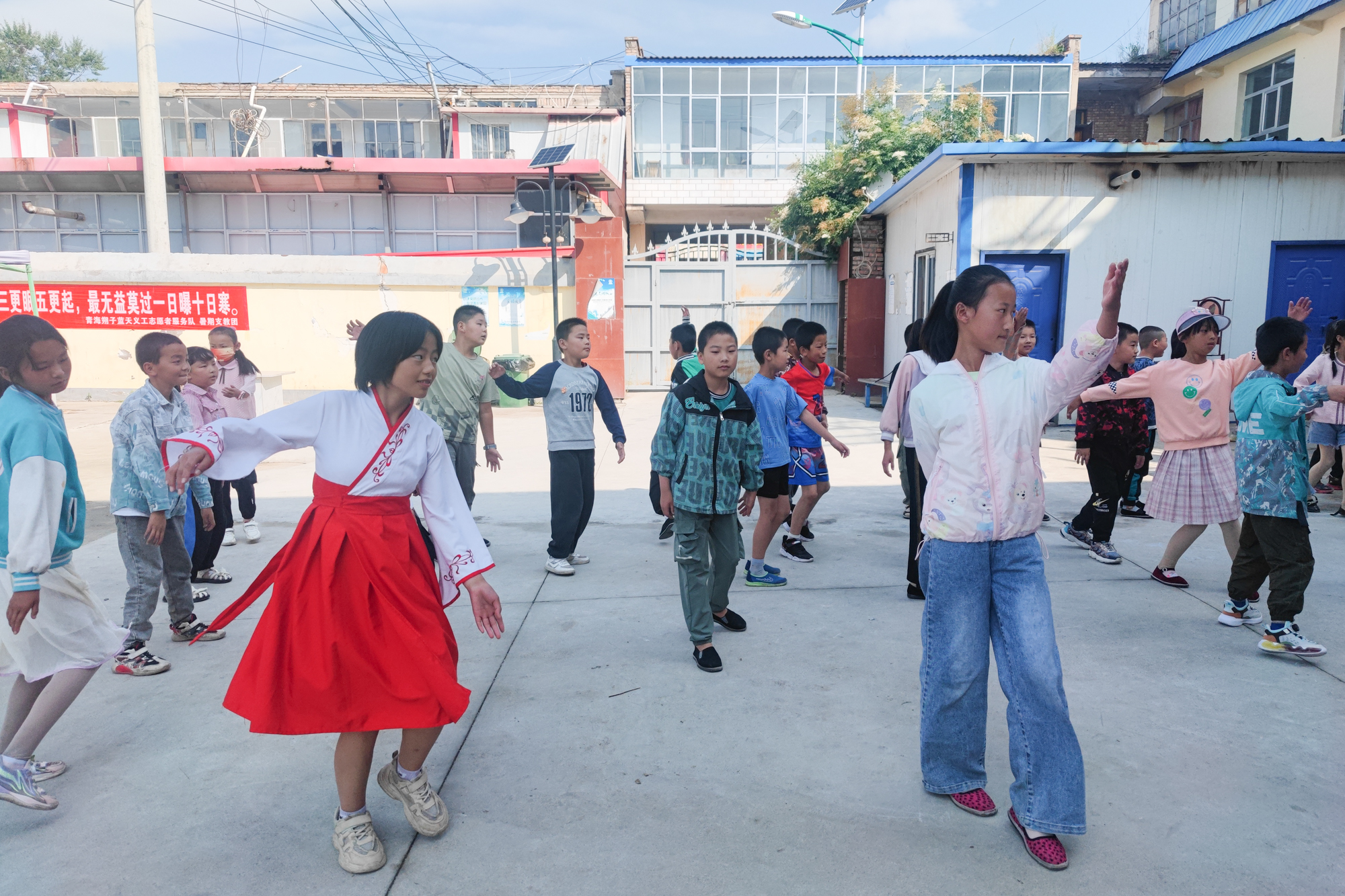 为给孩子们心田播撒希望的种子,给他们呈现最完美的知识海洋,实践队员们因地制宜,改造有限的上课资源,用心用情用智只为走进孩子们的内心世界。在青海省西宁市大通县东峡镇衙门庄村的一处宁静的乡村小学,校园里有着坚实的水泥地面,这是大学生志愿者与孩子们举办活动的临时舞台。一群年轻的舞者在水泥舞台上翩跹起舞,孩子们眼中充满自信、绽放着梦想的光芒。“尽管舞台条件有限,但孩子们的热情和努力让人难以忽视。”地理科学专业的师范生姚欣瑞同学眼中闪烁着对孩子们的赞许,“通过舞蹈、音乐和艺术,我们为孩子们创造了一个展示才华的平台,孩子们拥抱自己的创造力,让我们感受到扑面而来的惊喜和感动。”