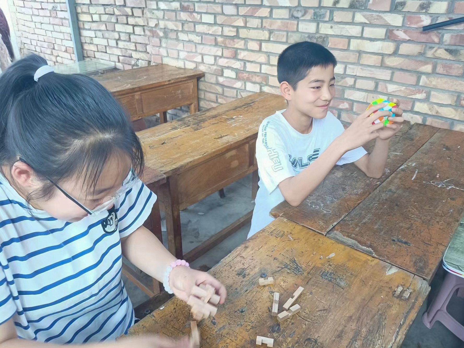 在甘肃省天水市郭嘉镇寺咀村,生物科学专业的大三师范生汪滢结合所学的教育教学知识,用兴趣作为最好的老师,挖掘孩子们身上的成长无限可能性。为了锻炼孩子们的空间认知和专注力,她设计魔方课程,和孩子们一起探讨智力游戏。其中一个小男孩在学习魔方知识后,快速成功拼好了魔方。汪滢感叹小朋友们的动手能力,“在手工课中,我发现他们的动手能力特别强。我们一起学习榫卯结构、魔方的知识,他们能够迅速掌握并完成,展现出了惊人的潜力。作为老师,我希望能够找到更多机会,挖掘他们身上更多的成长潜能。”