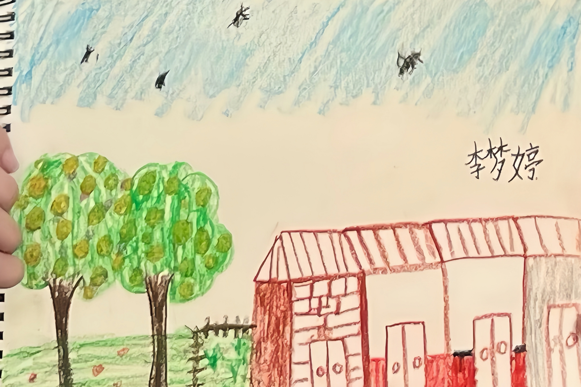 大学生志愿者用自己的知识与经验影响着孩子们,触动他们对知识的渴望、对梦想的追求,而在与孩子相处的过程中,这群未来教师也变得更加博爱、更懂协作、更敢拼搏。数学专业的邴一冉同学是大一的师范生,她和三位小朋友都来自山东省青岛市莱西市日庄镇院里村。她引导孩子们用手中的画笔描绘梦想的翅膀,孩子们也向她展示着画中的故事,“我们经常在这片草地上放风筝、奔跑、玩耍,有时候还会去看鸟窝里的小鸟。”看着这些天真烂漫的孩子,邴一冉内心被深深治愈和打动了,“那不仅是一幅画,更是富有生机的生活动图。画作里满是幸福的情感体验,这是能量满格最好的体现。”一张张美丽的图画,细数着孩子们美好的童年故事和场景,打动了在场的每一个人。