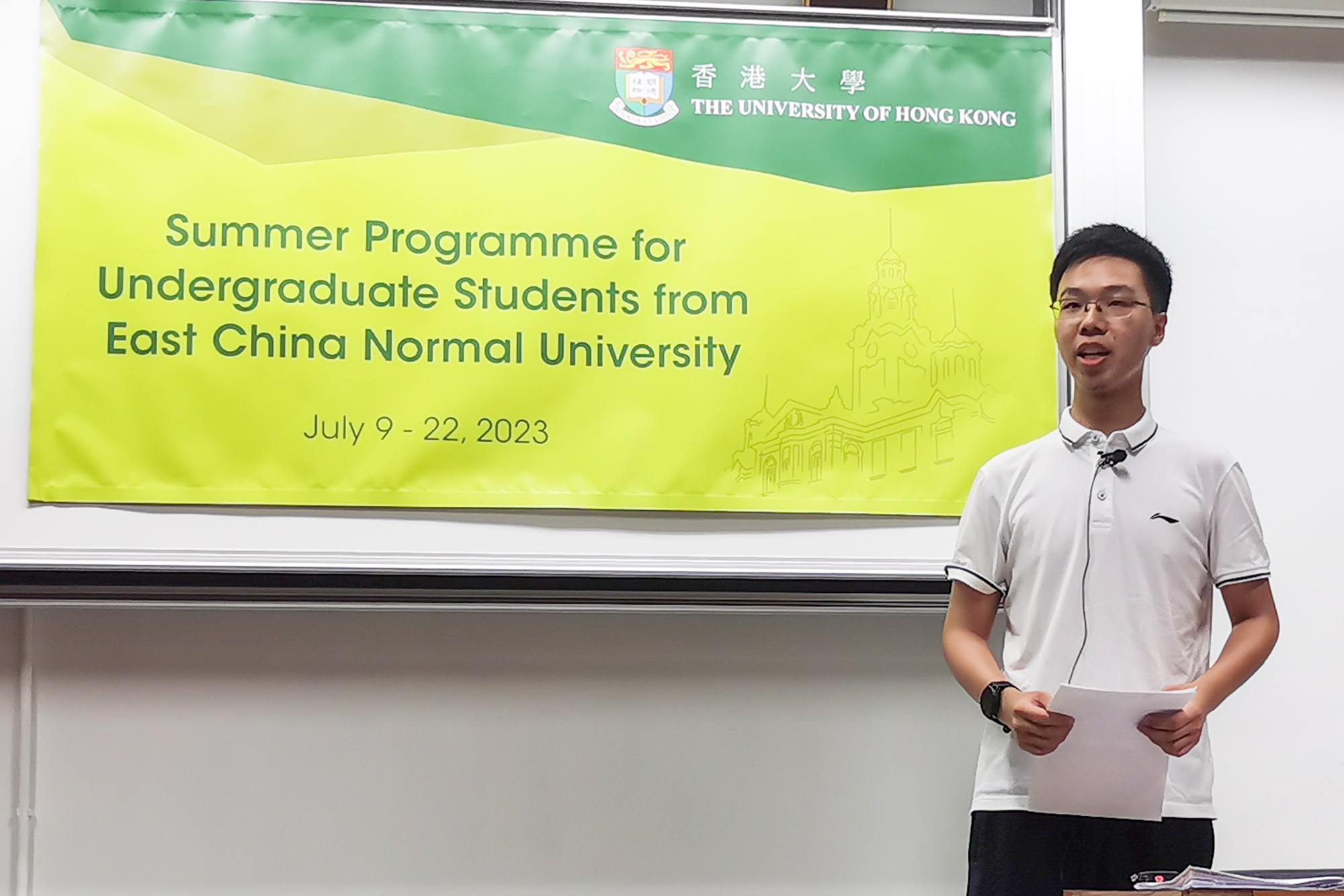 7月10日,在开班仪式上,文学院Michael LUK教授代表香港大学表达了对师大学子的欢迎,介绍了港大的历史和代表人物,希望同学们在两周的时间中学有所成、学有所获。完美(中国)官方地理科学专业本科生江东翼代表师大学子表达了对项目的期待,感谢两校为交流合作付出的努力。