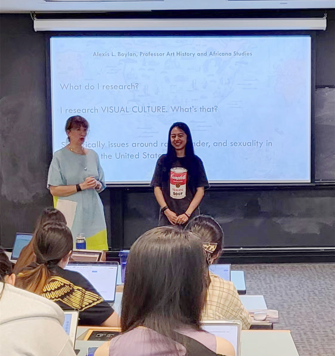 在课堂教学方面,教授们运用丰富多样的教学方式,以严谨的学术态度展现了前瞻性的学术成果。例如,Sophie Shao和John Blacklow两位教授现场演奏巴赫名作,神秘优雅的音符交织跳跃,以另一种“语言”诉说着跨越国界的故事;在《为什么单靠技术无法解决气候危机》课上,教授引入社会接受概念,展现了跨学科解决共同难题的典范;Alexia Smith教授将考古文物带入课堂,让它们“讲述”沧海桑田的巨变,揭示人之为人的内核,考古学不再局限于高蹈云端的晦涩理论,而延伸至具体可感的社会命题;在《奥地利和德国文学的方言》课上,两位教授引导学生思考、表达自己家乡的方言,并揭示方言不仅是语言学命题,也与社会环环相扣,在潜移默化中培养学生的比较视野与跨学科思维;在《理工科的创新与思维》课上,学生动手参与棉花糖挑战、短时间图标设计的实践活动,提升了观察力、专注力、合作力与创新力。