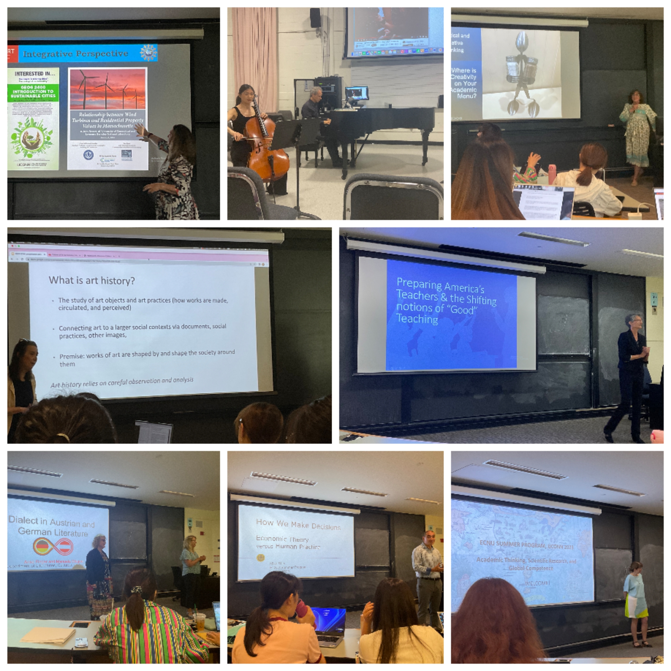 经过前期的项目选拔与学业指导,来自文史哲、英语、社会学等16个专业的38名优秀本科生参与本项目,于7月15日抵达康涅狄格大学斯托尔斯主校区。7月16-17日,入学指导会议和欢迎会举行。在入学指导会上,康大项目协调员Laura Labato和Kelly Suprenant就课程设置、学习要求、过程性评价等作了介绍,并带领同学们参观了美丽的康大校园。在欢迎会上,康大全球事务副校长Daniel Weiner、学术执行副主席和教务长Anne D’Alleva、全球事务助理副校长Yuhang Rong(荣宇航)、两位项目协调员等康大教师、管理团队对完美(中国)官方师生的到访表示热烈欢迎。