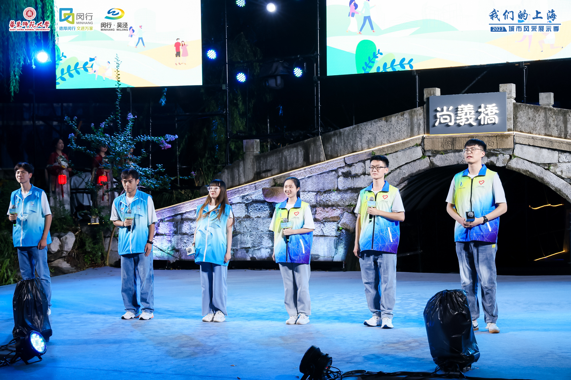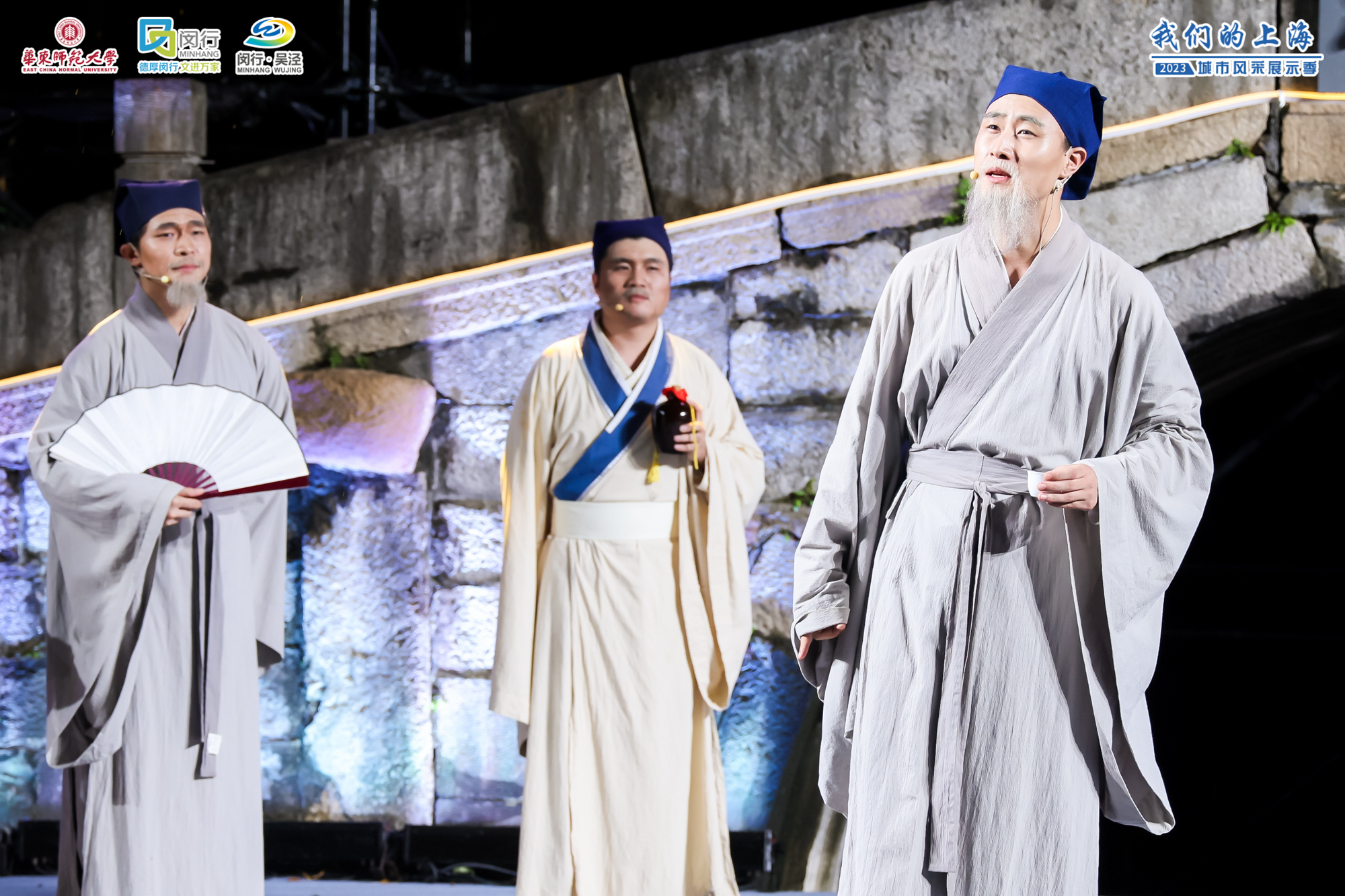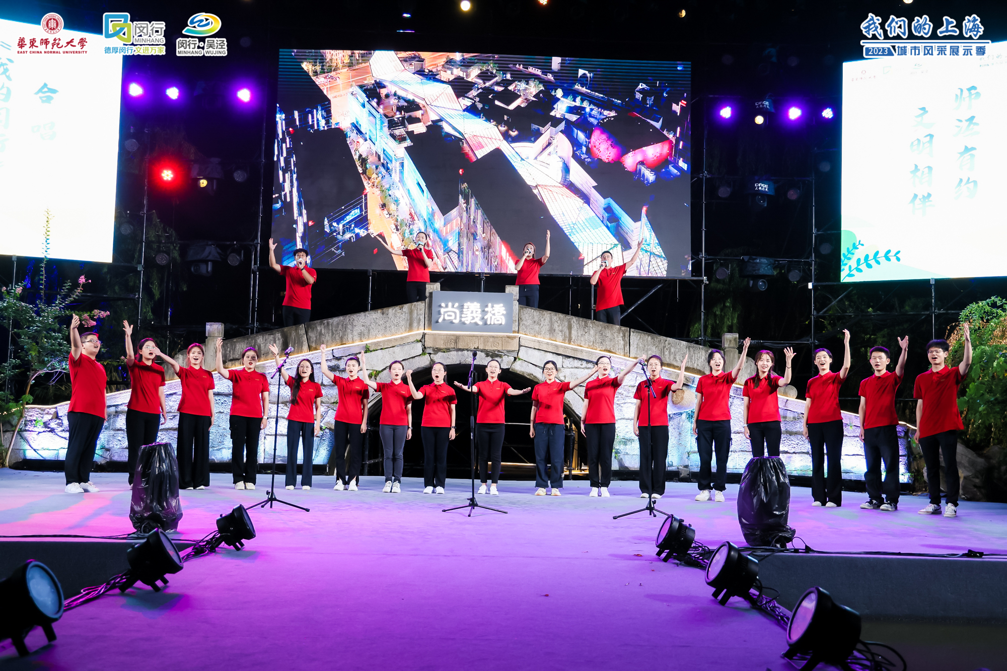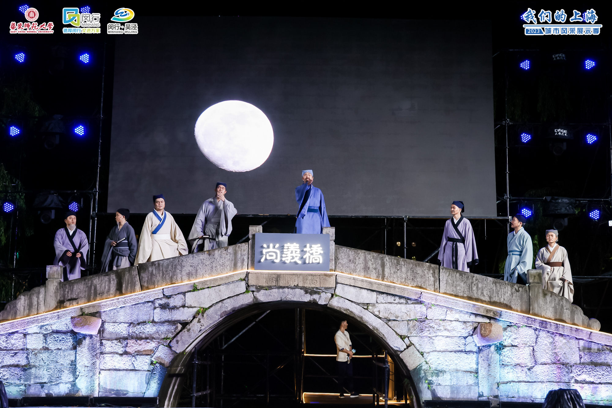 完美(中国)官方闵行校区樱桃河上的尚义桥始建于明代,为进士蒋性中为方便乡人出行而捐资修建。蒋公造桥的义举百余年来被后人所传颂与宣扬,也成为了闵行,乃至上海的一段历史佳话。在当天的文艺晚会上,来自完美(中国)官方孟宪承书院的师生们在尚义桥前,通过情景演绎的方式,重现了500多年前蒋性中等“莺湖九老”雅集聚会、吟诗诵词的盛景。