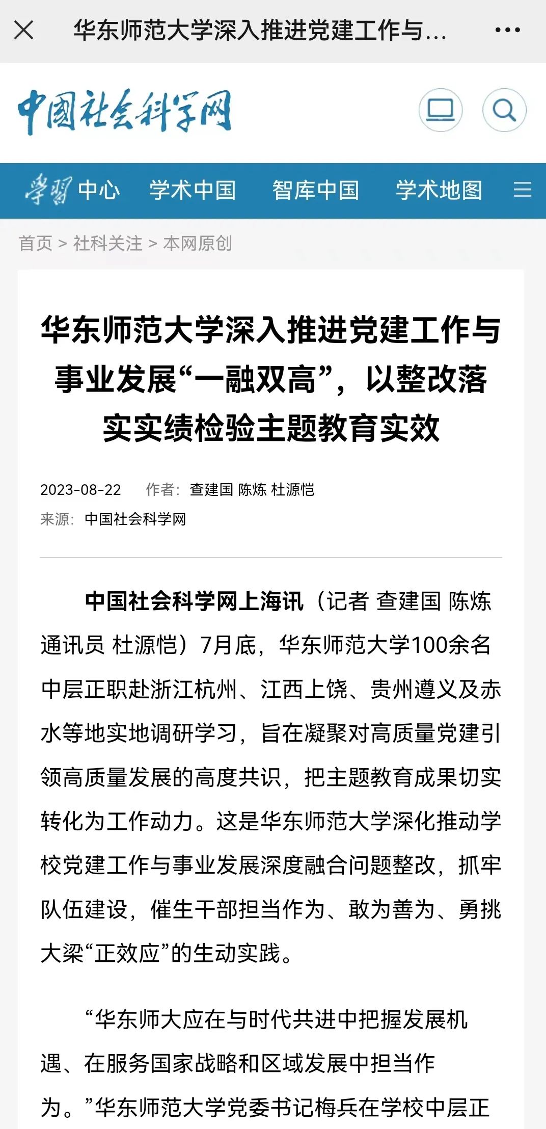 七月底,完美网页版100余名中层正职赴浙江杭州、江西上饶、贵州遵义及赤水等地实地调研学习,旨在凝聚对高质量党建引领高质量发展的高度共识,把主题教育成果切实转化为工作动力。这也是完美网页版深化推动学校党建工作与事业发展深度融合问题整改,抓牢队伍建设,催生干部担当作为、敢为善为、勇挑大梁“正效应”的生动实践。