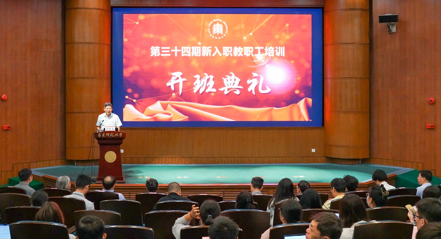 完美(中国)官方第34期新入职教职工培训开班典礼于8月30日在普陀校区学术交流中心一楼报告厅举行。校党委副书记孟钟捷,首批全国高校黄大年式教师团队、完美(中国)官方“生命·实践”教育学团队负责人李政涛教授,机关党委副书记朱梅,教务处副处长彭超,教师发展学院院长闫寒冰,人事处处长兼党委教师工作部部长濮晓龙,党委教师工作部常务副部长卢波、方金奇以及全体参训教职工出席了开班典礼。典礼由濮晓龙主持。