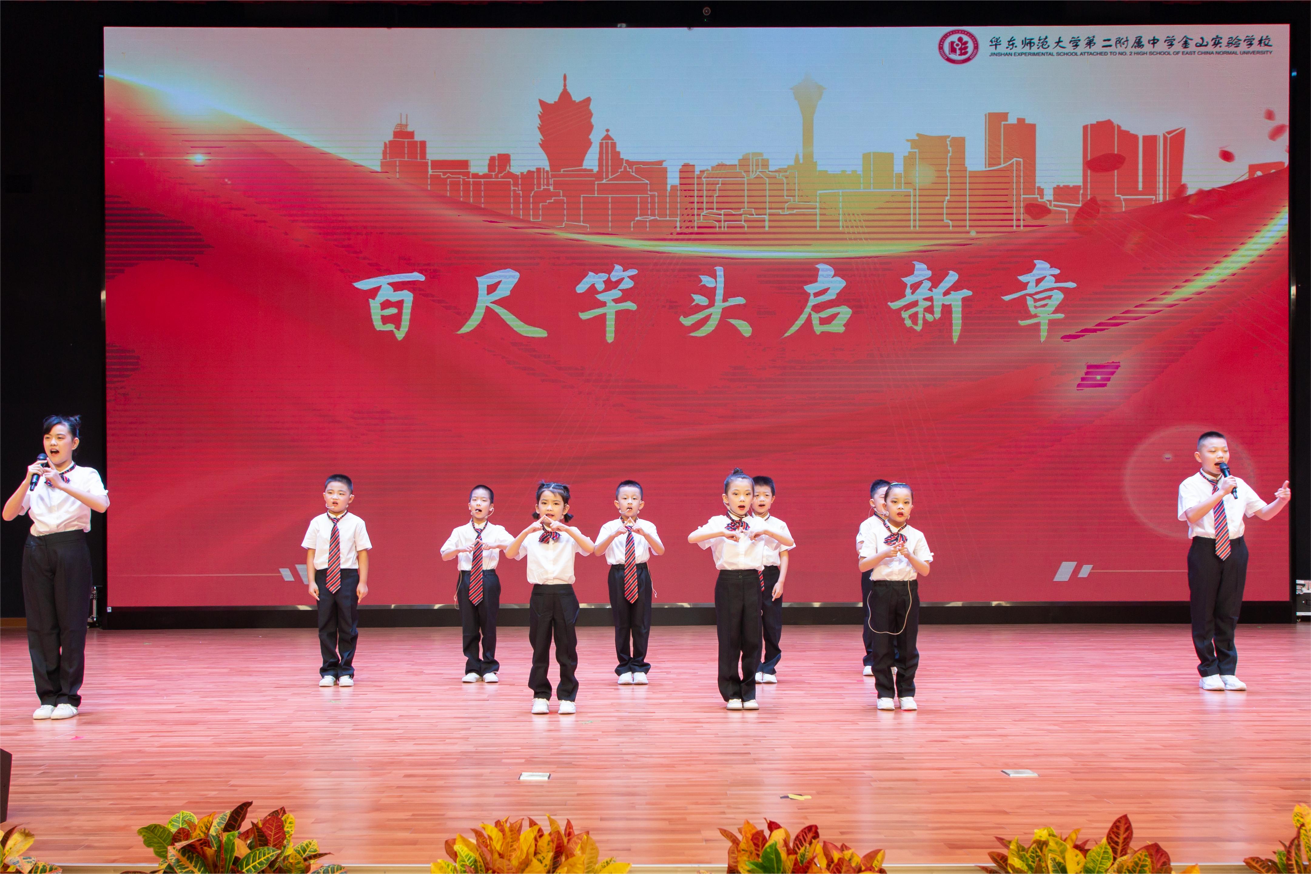 开学典礼上,学校师生各显身手,献上了一场精彩的演出。随后,与会嘉宾为华二金山实验学校学子授予象征着希望和传承的班级铭牌,并为华二金山实验学校推杆揭牌。