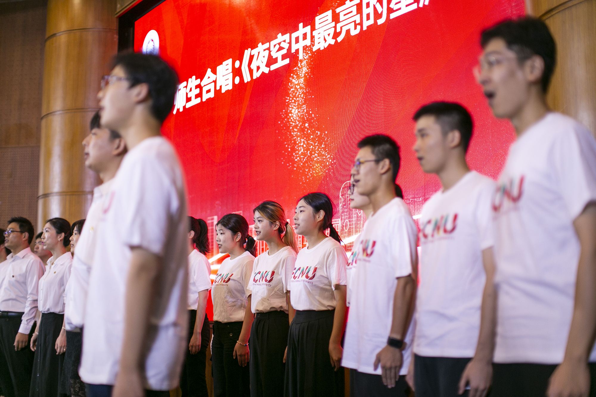 来自党的诞生地上海、内蒙草原、广西乡村、黄河源头或祖国边疆的师范学子,以一首《我们是新时代的未来教师》诗朗诵,表达了他们坚定投身教育信仰、回报家乡,用青春之志助力民族复兴伟大事业,自立自强勇敢担当之决心。