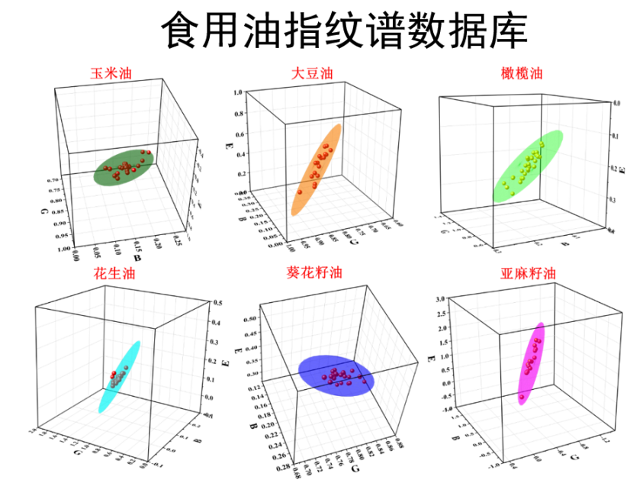 姚叶锋研究员介绍说,为了更好地帮助执法人员识别食用油真伪,研究团队对我国市场上常见的玉米油、橄榄油、花生油、大豆油、亚麻籽油、葵花籽油这6类食用油建立了含有150多个品牌食用油的磁共振指纹谱数据库。只需将要待测食用油样品置于仪器中,仪器便会通过专门软件将得出的食用油“指纹”信息与数据库中的信息进行对比,即可快速鉴别出其“身份”。