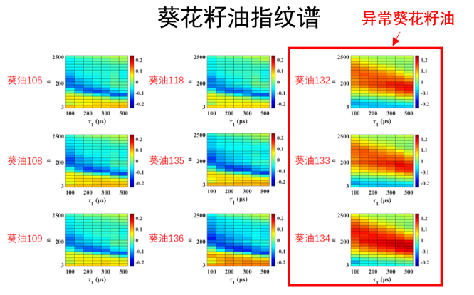 该快检系统在与张家港海关的合作中初见成效。研究人员成功地在9个进口入关的葵花籽油样品中找出了3个“指纹”异常的样品。在此提示下,海关人员对上述葵花籽油进行国标检测,发现3个“指纹”异常的样品中油酸显著偏高,不符合我国葵花籽油国标GB/T 10464-201,为国家避免了经济损失。值得一提的是,基于现有检测技术,每个样品检测常常需要5-7个工作日,而利用磁共振快检系统,每个样品检测时间仅需不到10分钟。