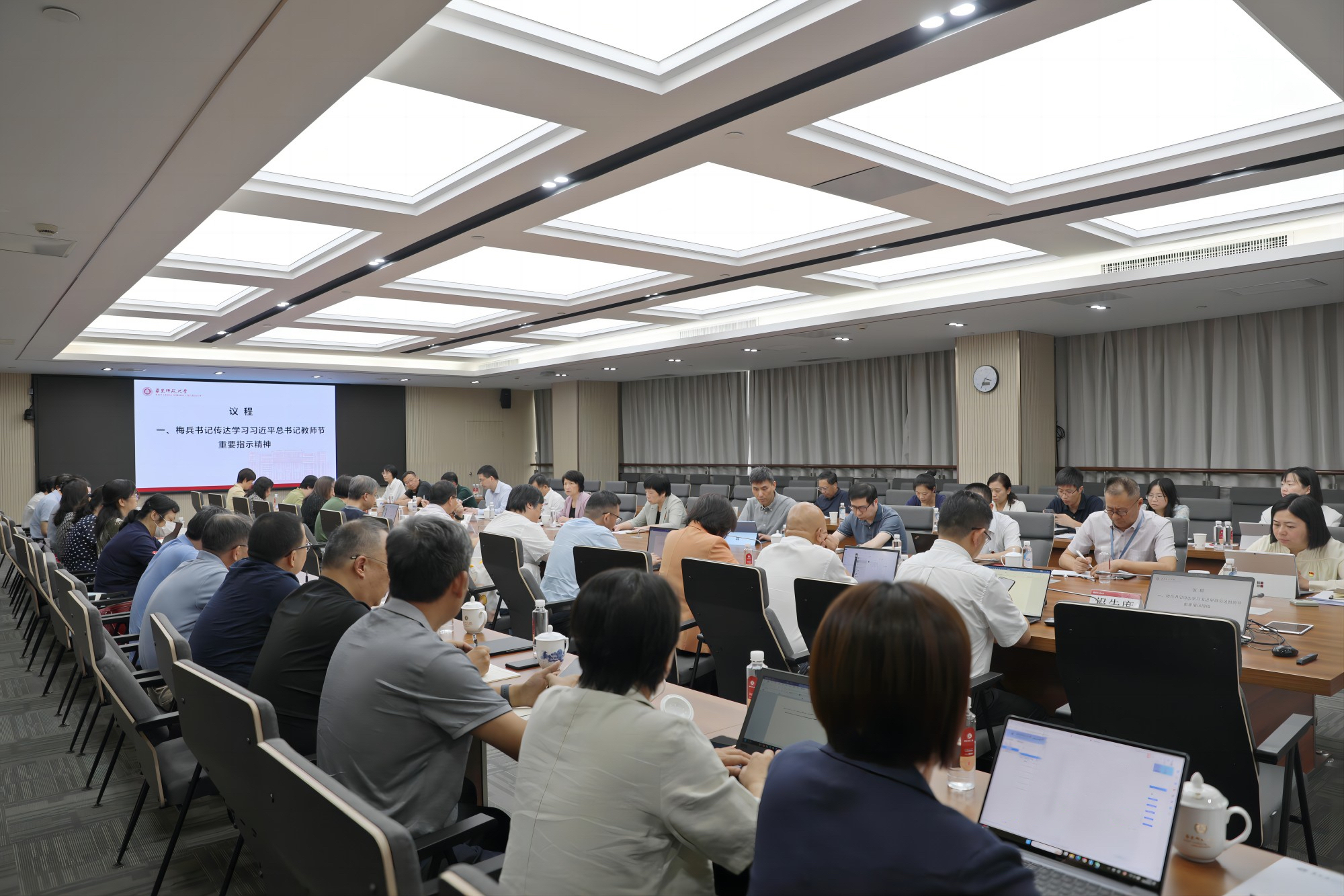 会上,梅兵传达学习习近平总书记教师节重要指示精神;第十四次党代会工作机构介绍了相关筹备工作情况;孟钟捷通报了近期意识形态和网络安全、人事人才、老龄等相关工作;曹友谊通报了近期纪委相关工作。