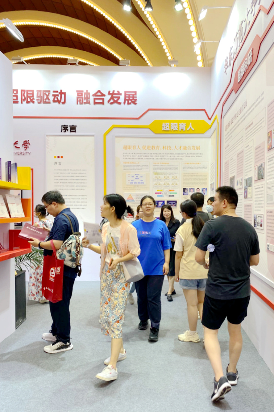 学校勇于超越局限、界限和极限,率先提出“超限”理念,开展“超限制造”研究,并据此开展超限育人、超限科研和超限服务的探索,引发了参观者的关注和思考。还有不少专业观众在现场展出的《教育强国建设规划纲要(学术版)》《建设强国之师 筑牢强国之基》等研究成果前驻足学习。