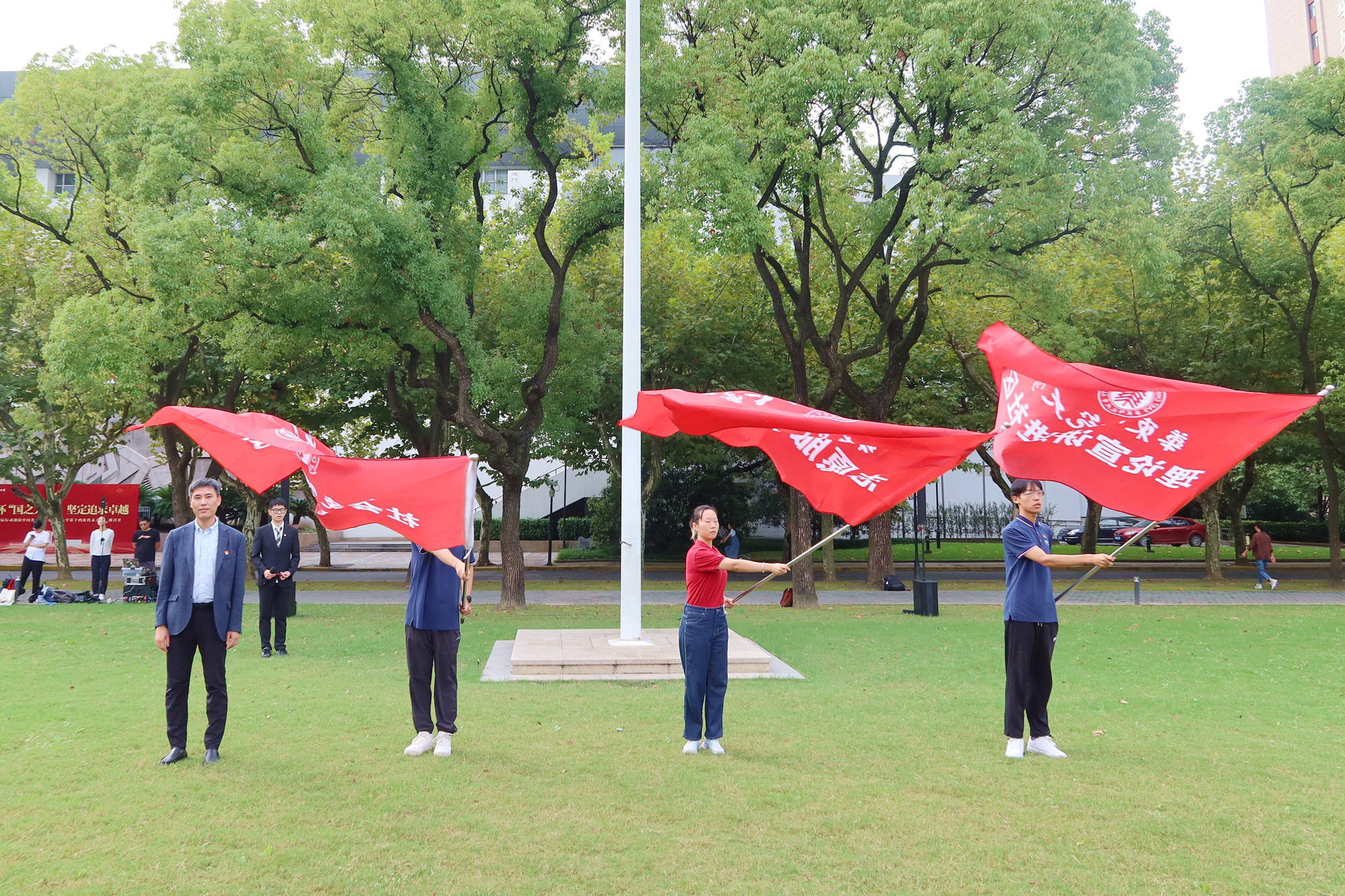 校党委副书记孟钟捷为“大学生社区实践计划”学生代表授旗