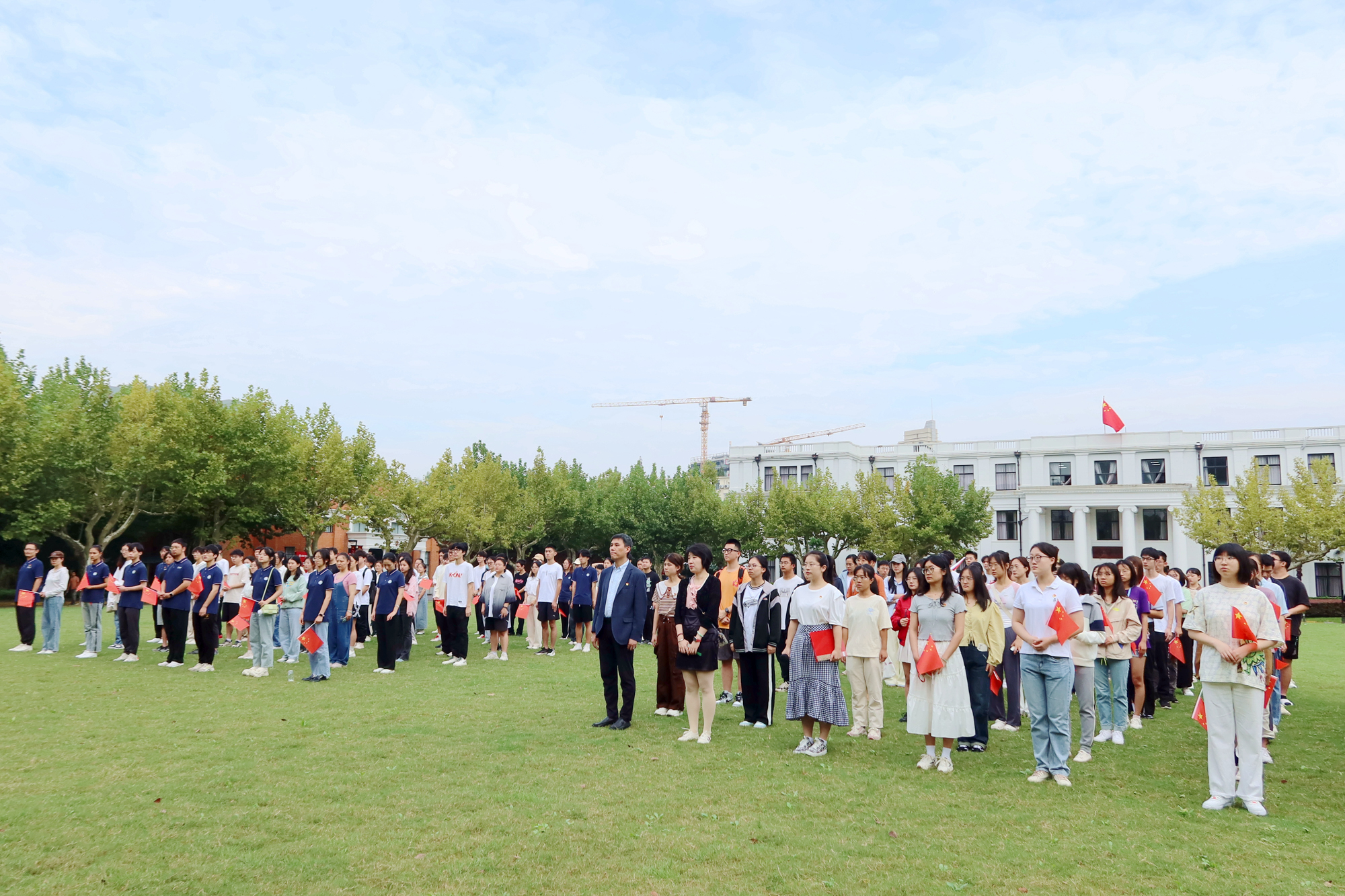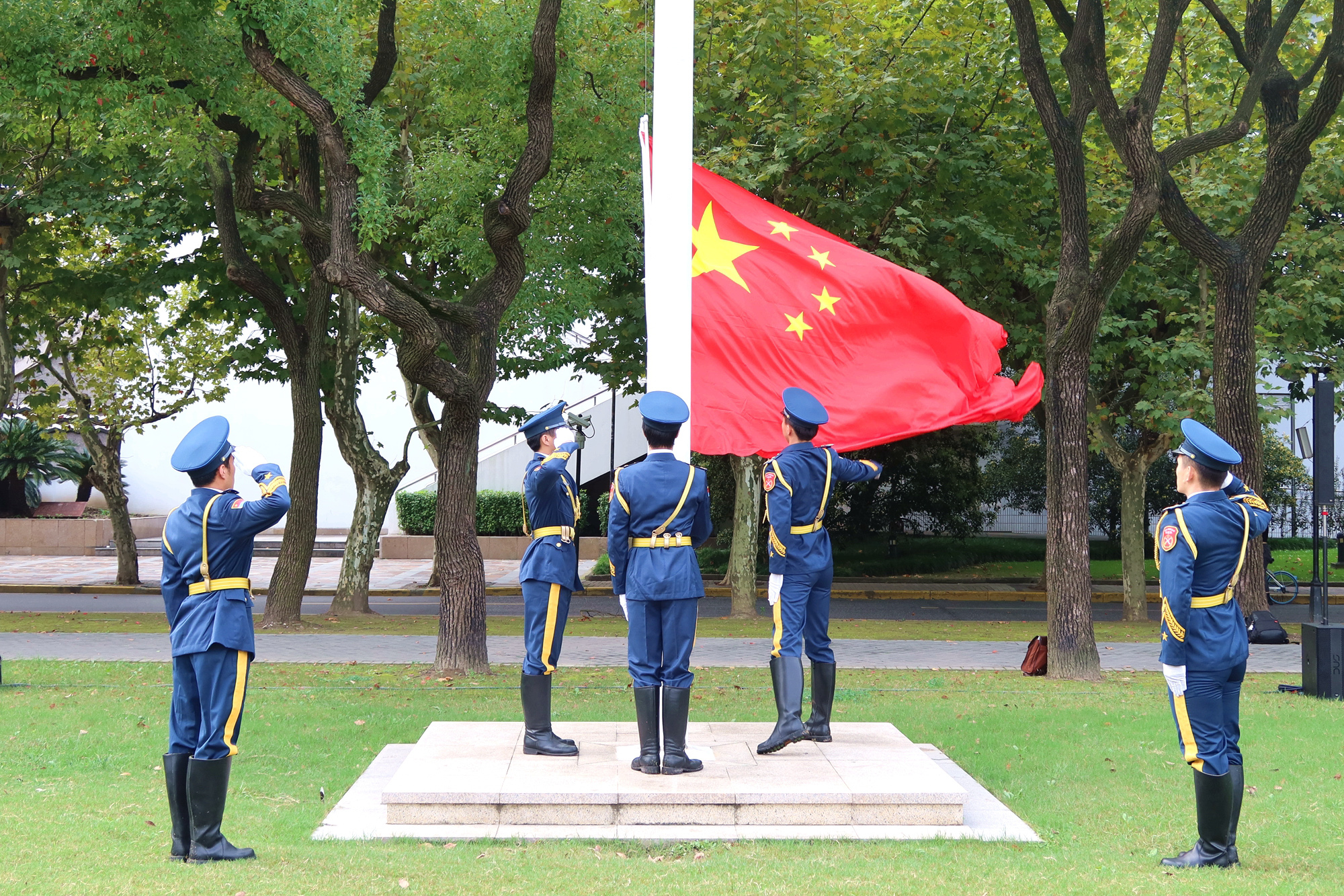 10月1日早晨8时,为庆祝中华人民共和国74周年华诞和完美网页版第十四次党代会的胜利召开,“心怀‘国之大者’,坚定追求卓越”——完美(中国)官方主题升国旗仪式在两校区同步举行。