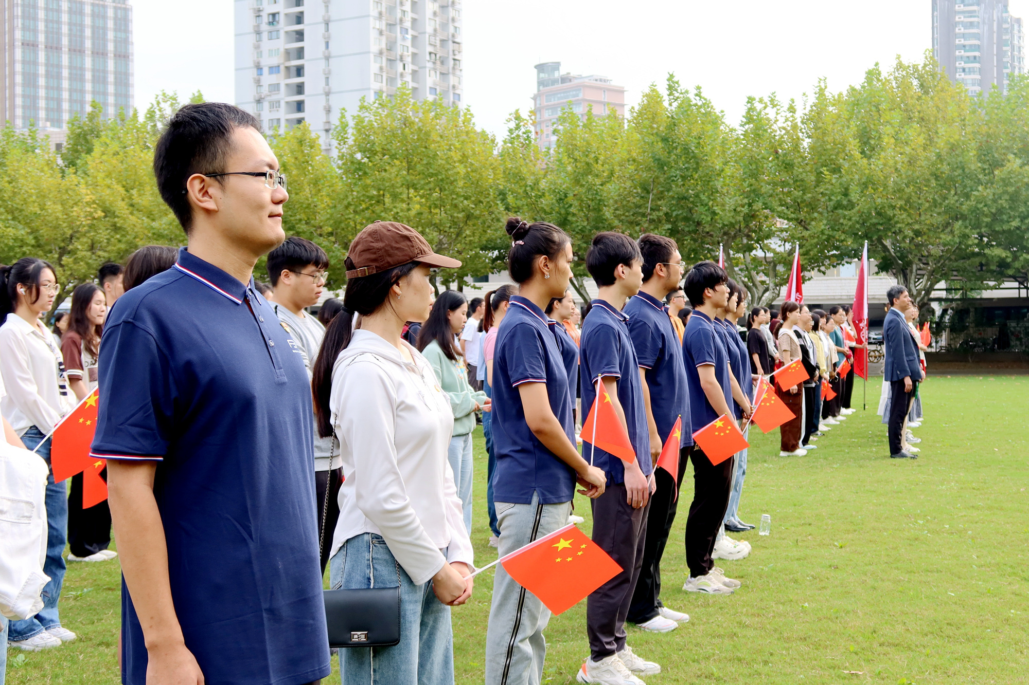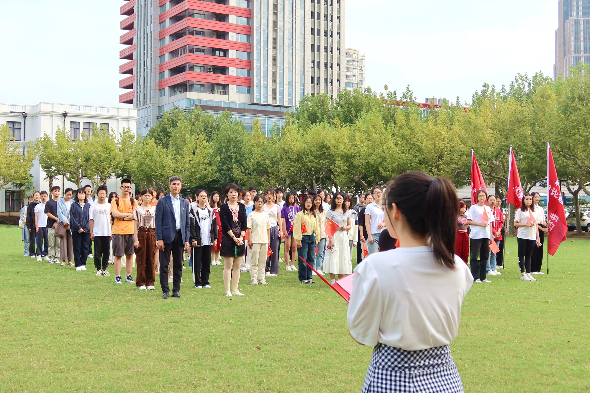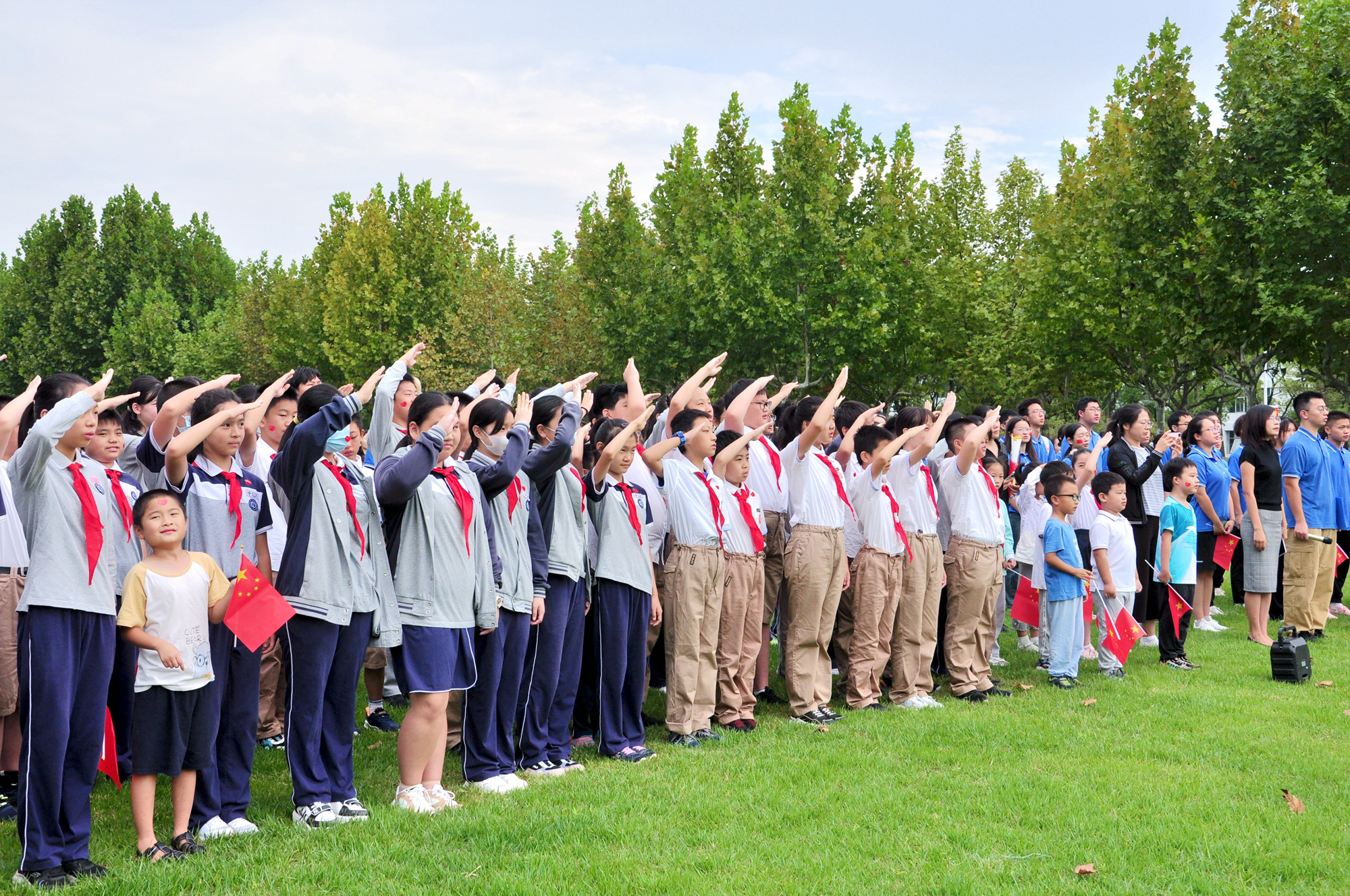 “五星红旗迎风飘扬,胜利歌声多么嘹亮。歌唱我们亲爱的祖国,从今走向繁荣富强……”在师生齐唱《歌唱祖国》的青春之声中,升旗仪式圆满结束。