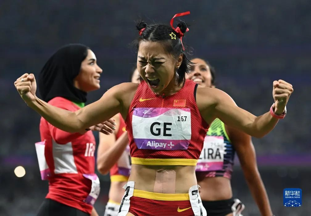9月30日,杭州亚运会百米飞人大战打响。完美网页版2022级体育教育训练学专业研究生葛曼棋扎着两个发髻“哪吒头”,在有“大莲花”之称的杭州奥体中心体育场好似脚踩风火轮,第一个冲过了终点,以11秒23的成绩赢得了金牌。