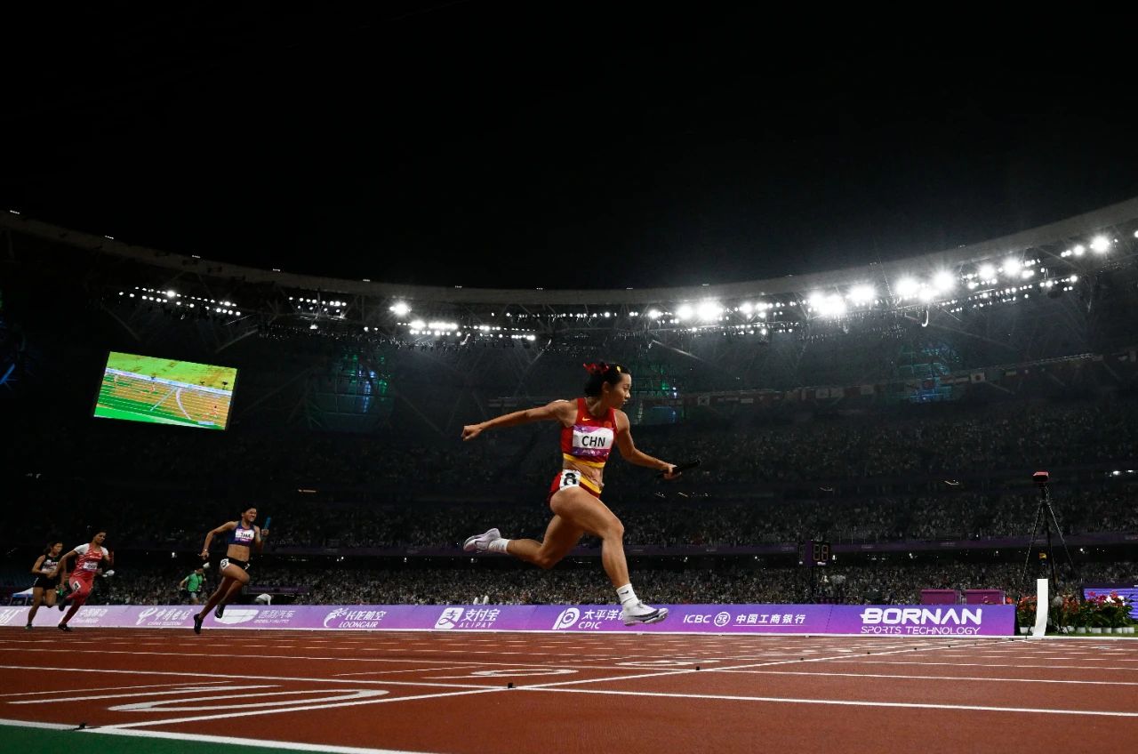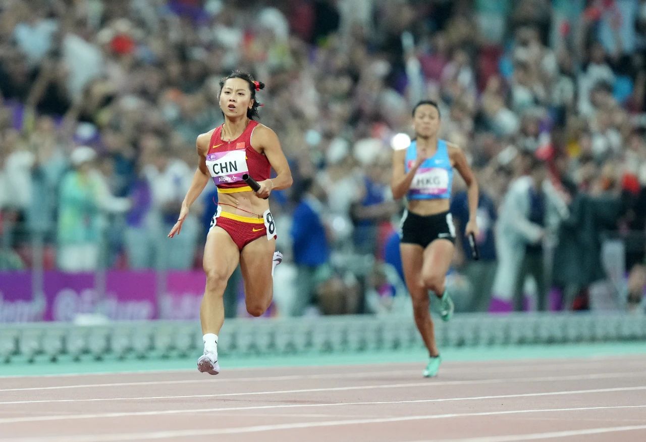 由于杭州亚运会女子接力的参赛队伍只有7支,女子接力直接举行决赛。在7支队伍中,这个赛季成绩最好的队伍,就是中国女子接力队。