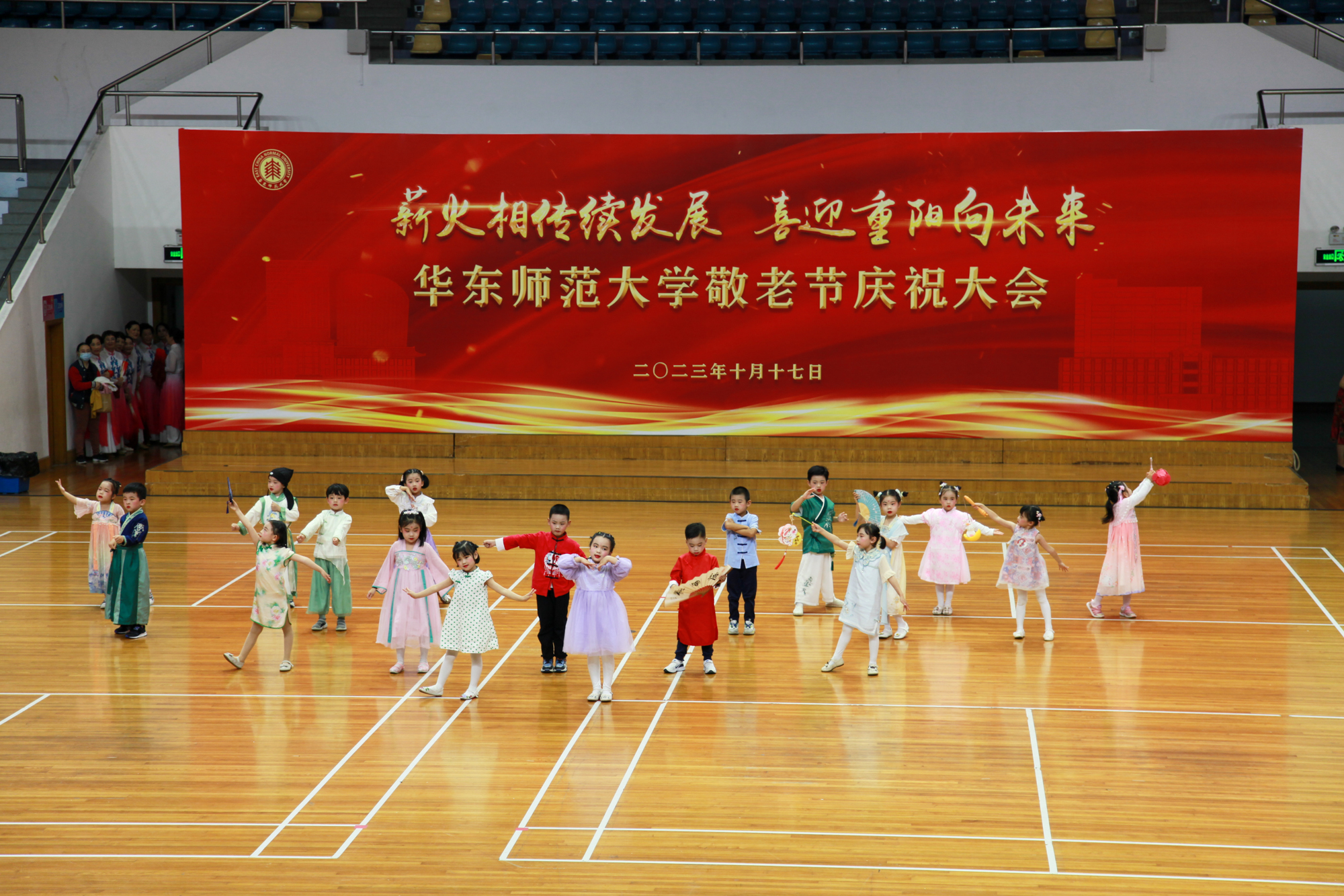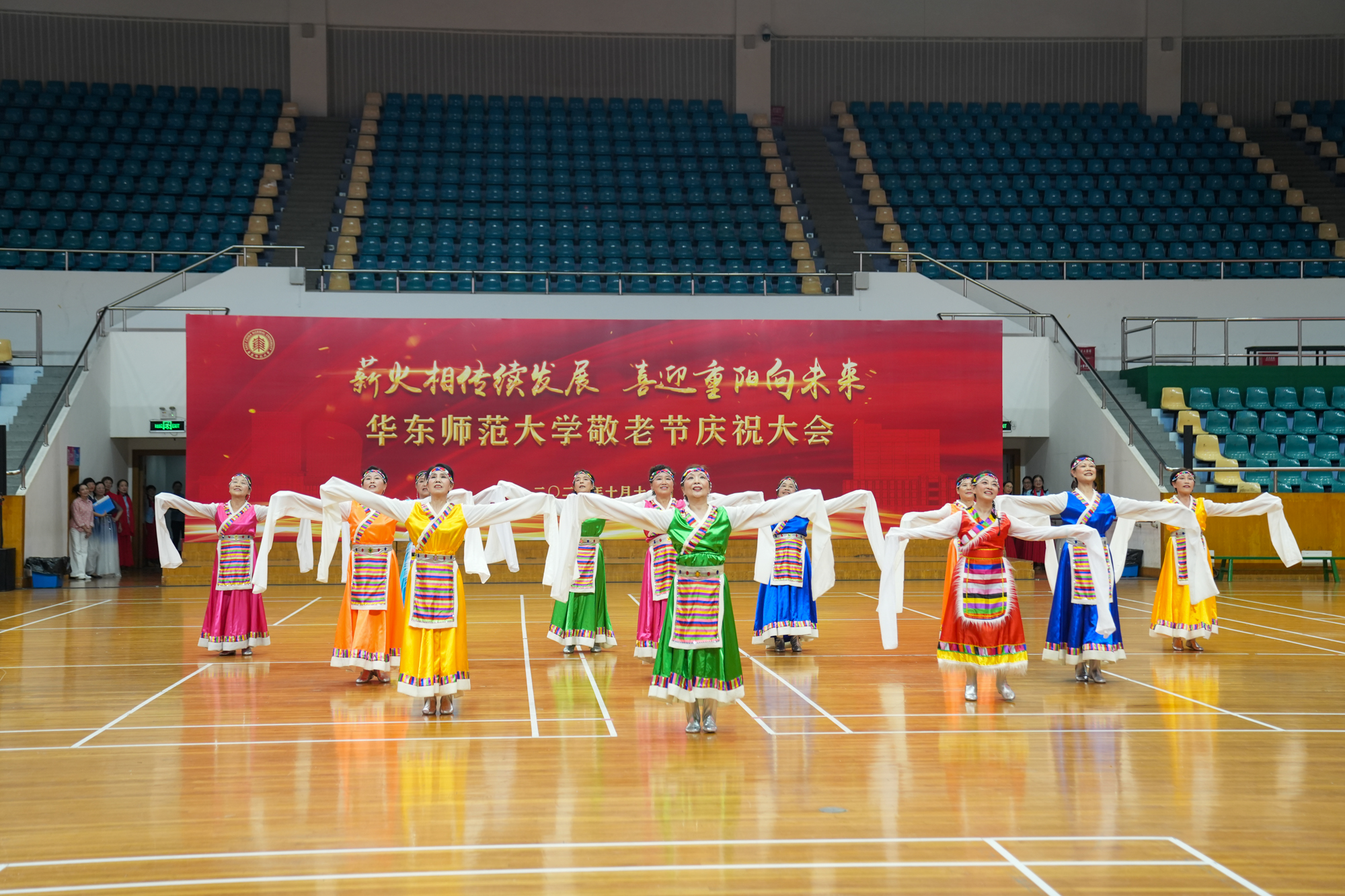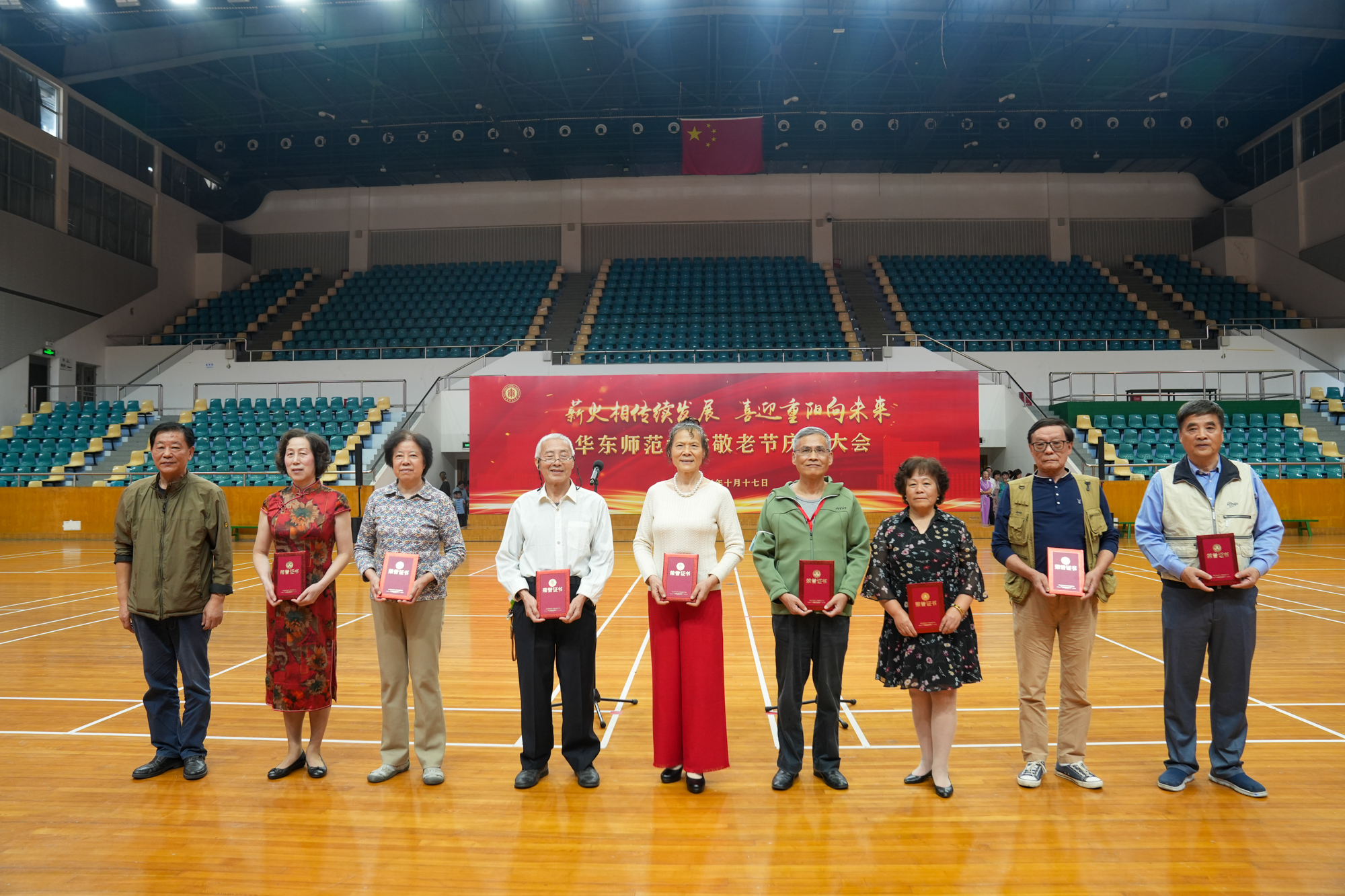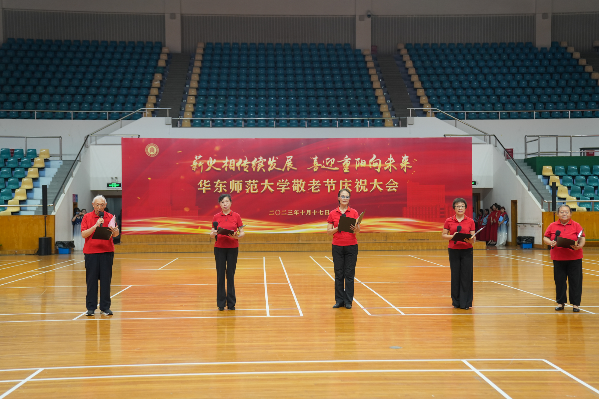 10月17日下午,完美(中国)官方敬老节庆祝大会在普陀校区体育馆举行,千余位离退休教职工相聚丽娃河畔共庆重阳佳节。校党委副书记、老龄委副主任孟钟捷,上海市教卫工作党委老干部处,市教委高校退管会领导及我校各院系(单位)离退休工作负责人出席大会。大会由老干部党委书记、老龄委办公室主任张军主持。