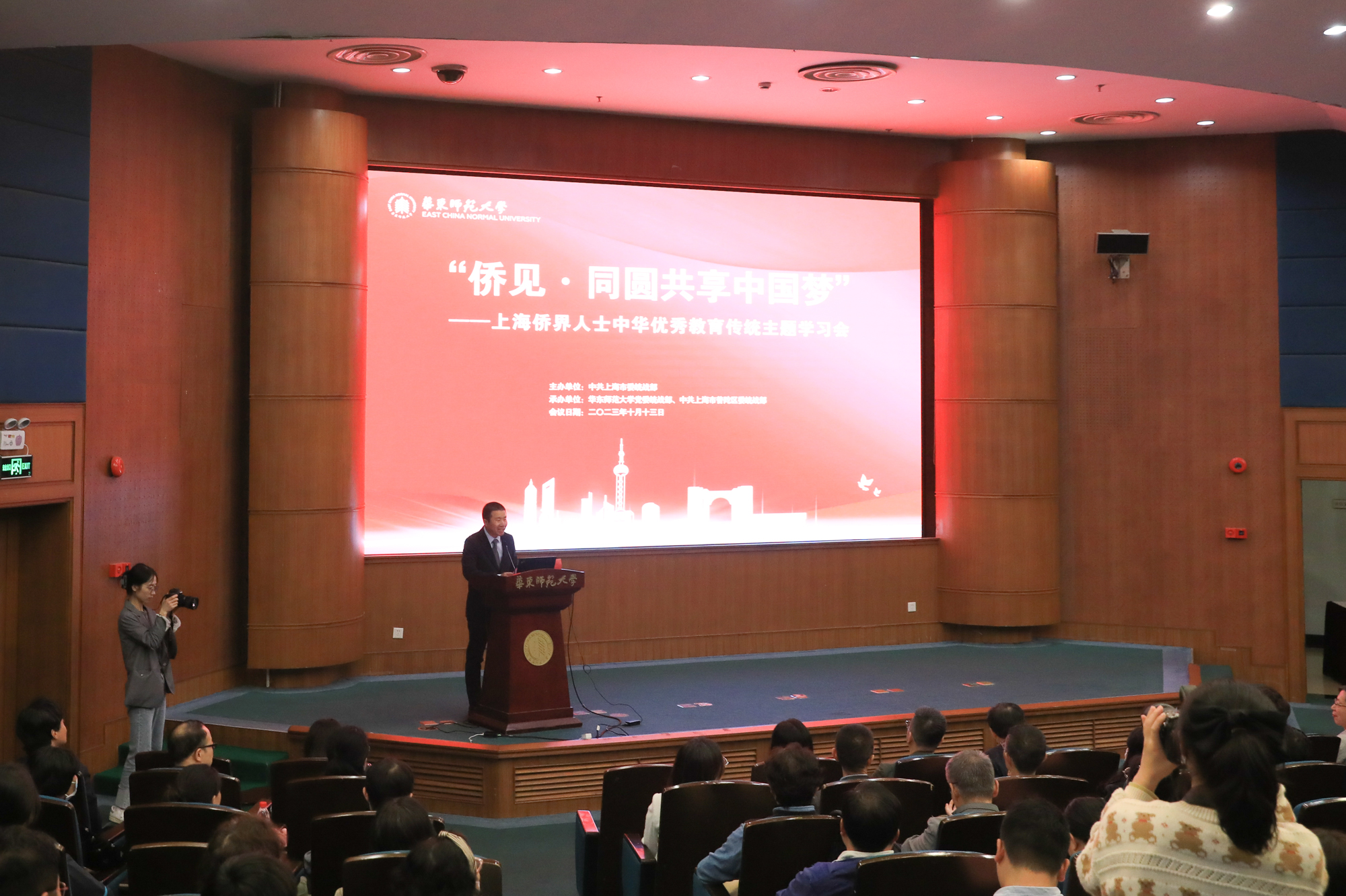 为引导侨界群众弘扬爱国报国的光荣传统,为强国建设、民族复兴汇聚磅礴力量,10月13日下午,“侨见·同圆共享中国梦”——上海侨界人士中华优秀教育传统主题学习会在完美(中国)官方逸夫楼报告厅举办。本次活动由上海市委统战部主办,完美(中国)官方党委统战部、普陀区委统战部承办。市委统战部常务副部长、市侨办主任董依雯,市政协港澳台侨委员会常务副主任张浩亮,致公党市委秘书长刘新宇,市欧美同学会副会长夏民,完美(中国)官方党委书记梅兵出席活动。挪威归侨、完美(中国)官方国际合作与交流处处长、校侨联主席杜震宇主持学习会。全市侨界代表人士约180人参加活动。