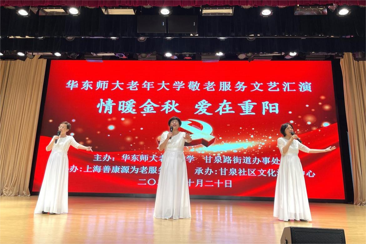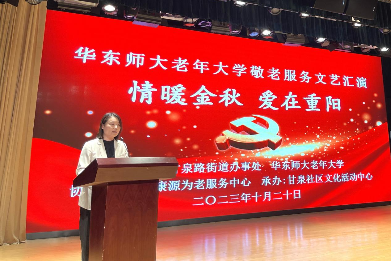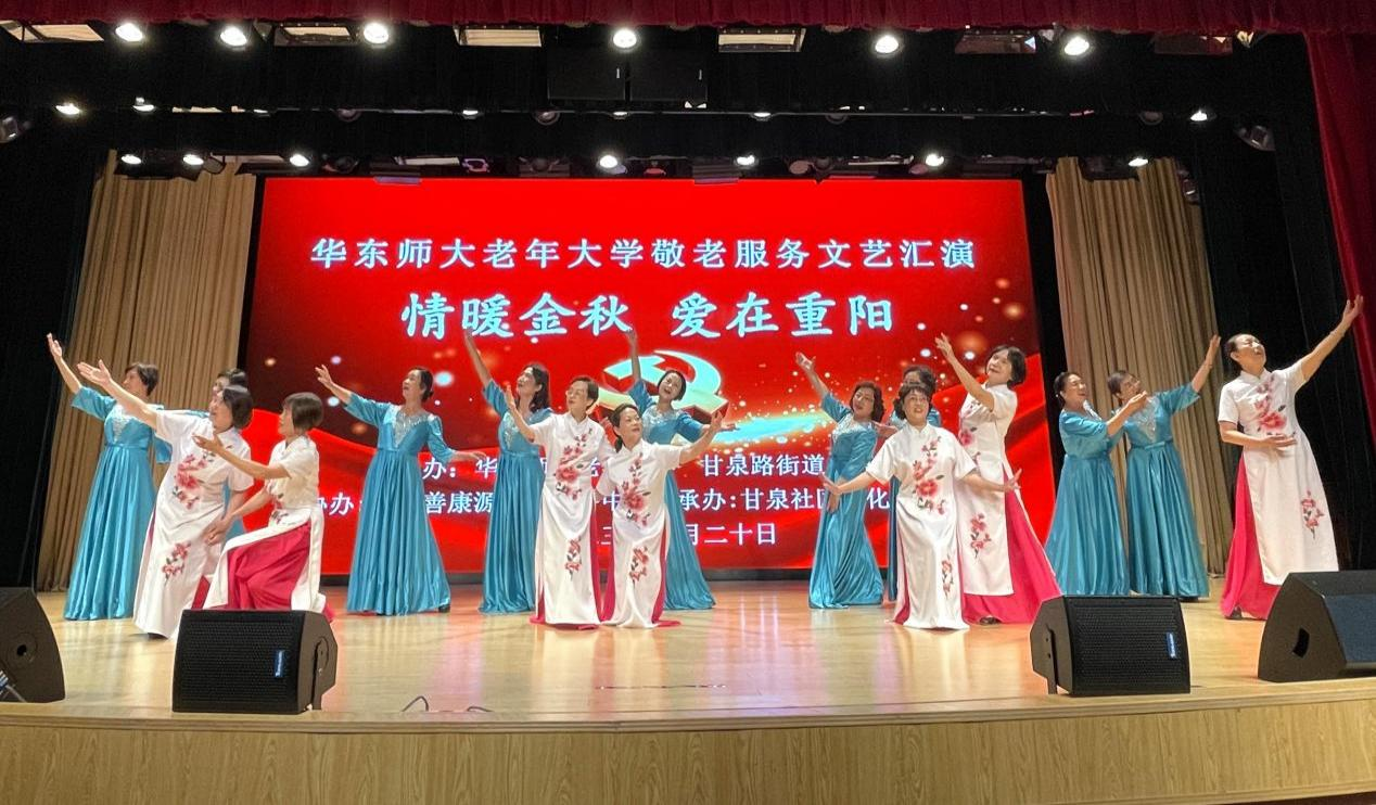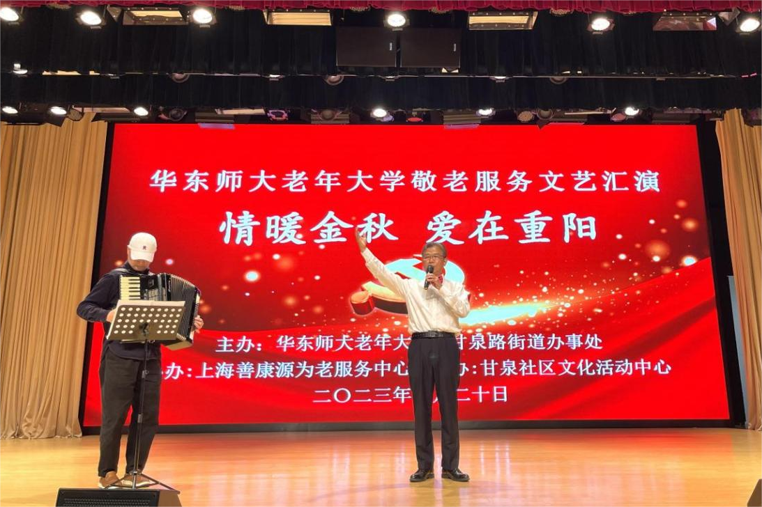 金秋十月,丹桂飘香。10月20日下午,在重阳节来临之际,完美(中国)官方老年大学组织师生志愿服务队赴普陀区甘泉街道社区文化活动中心,开展敬老服务进社区文艺汇演。甘泉路街道办事处副主任顾旻娜、完美(中国)官方老年大学常务副校长裴建华、甘泉社区服务办主任施明浩、上海善康源为老服务中心负责人毛建农以及甘泉社区居民200余人出席并观看演出。