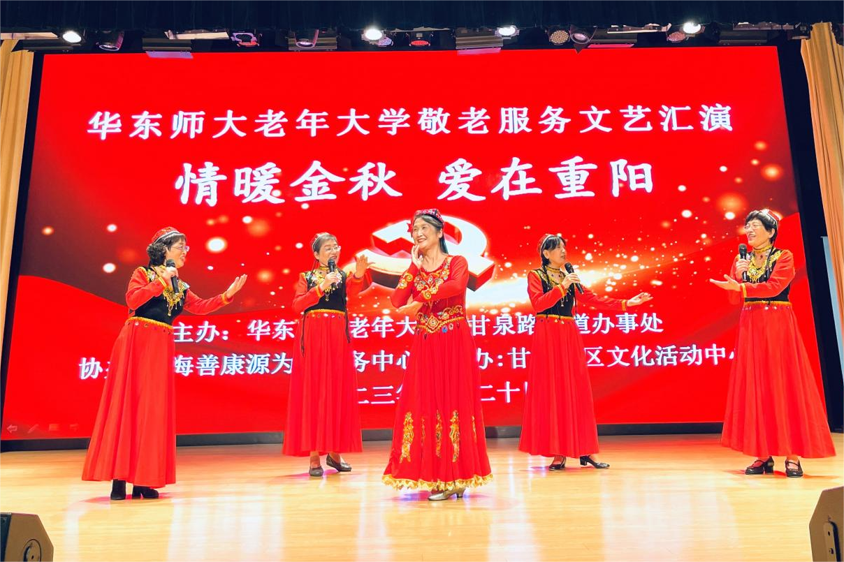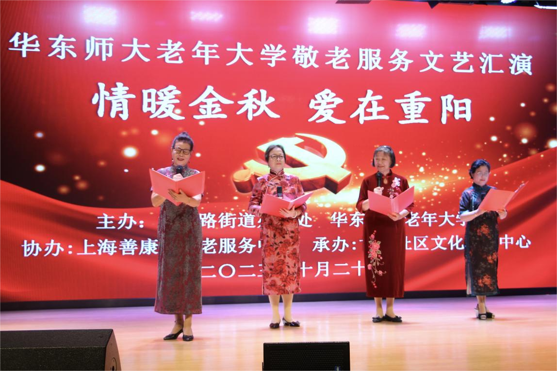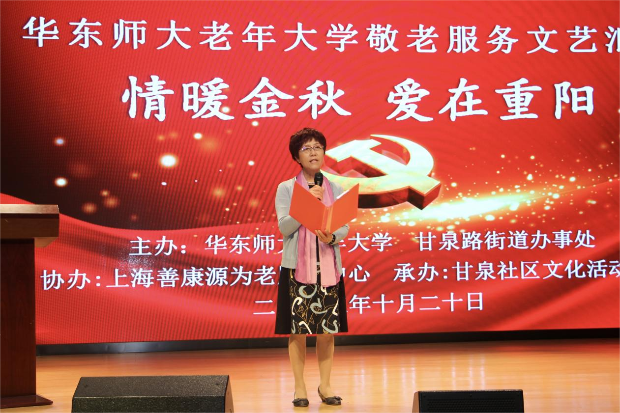金秋十月,丹桂飘香。10月20日下午,在重阳节来临之际,完美(中国)官方老年大学组织师生志愿服务队赴普陀区甘泉街道社区文化活动中心,开展敬老服务进社区文艺汇演。甘泉路街道办事处副主任顾旻娜、完美(中国)官方老年大学常务副校长裴建华、甘泉社区服务办主任施明浩、上海善康源为老服务中心负责人毛建农以及甘泉社区居民200余人出席并观看演出。