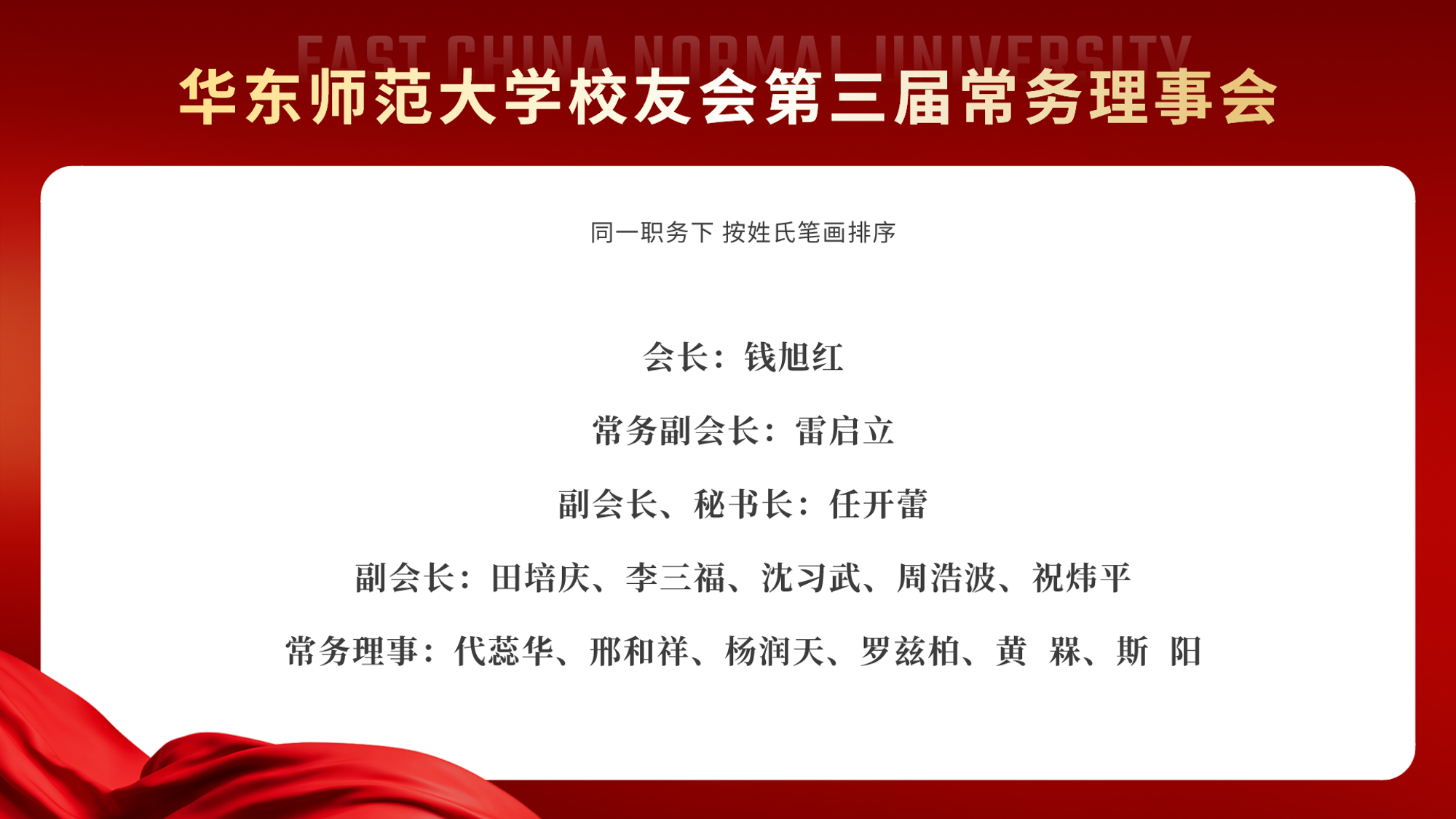 新当选的第三届理事会召开第一次会议并先后听取第三届常务理事会人选、产生情况的报告,听取和审议常务理事会选举办法,听取和审议第三届理事会法人代表由秘书长担任的议题。会议通过无记名投票,选举出了校友会第三届常务理事会。
