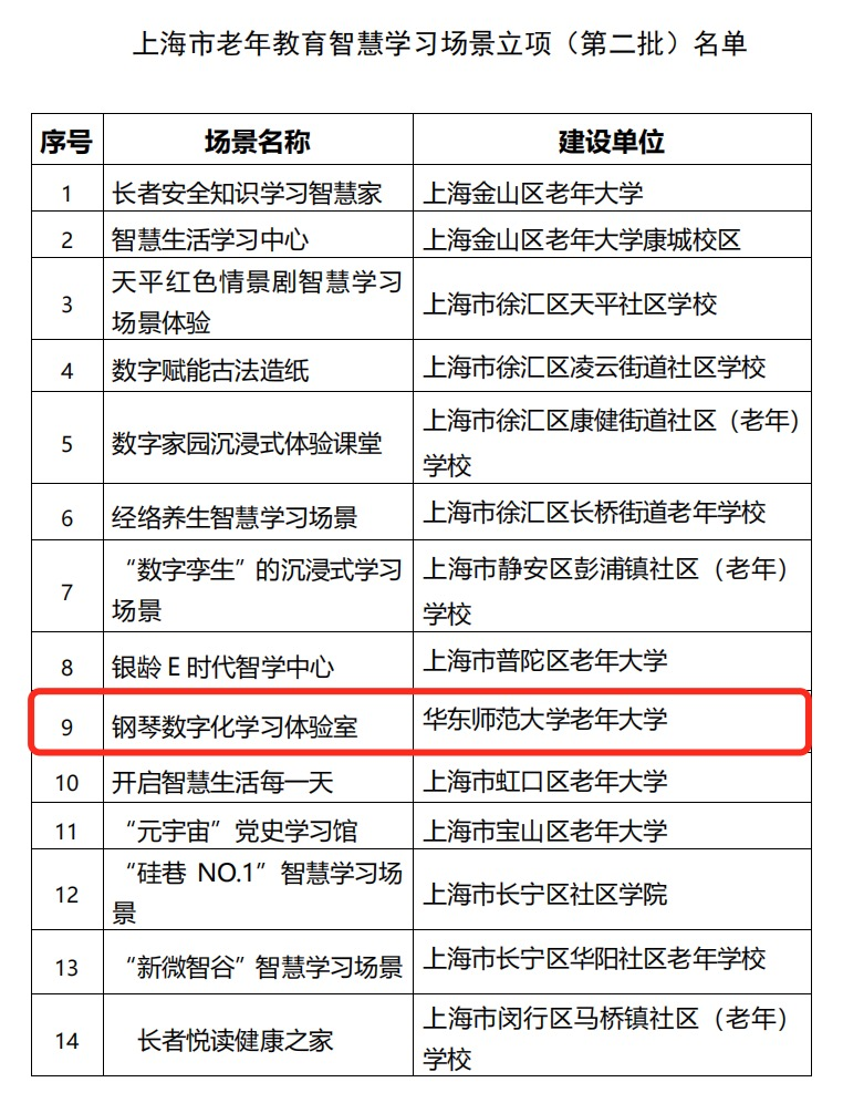 此前,完美(中国)官方老年大学根据上海市教育委员会印发《关于推进本市老年教育数字化发展的意见》要求,于2021年申报的“多代共学之智慧学习场景”设计方案通过认定,成为高校老年大学中唯一获批上海老年教育智慧学习场景设计方案认定名单(实践类);同时在2021年度老年教育机构数字化转型工作评选中,荣获“2021年上海市老年教育数字化转型表扬单位”。
