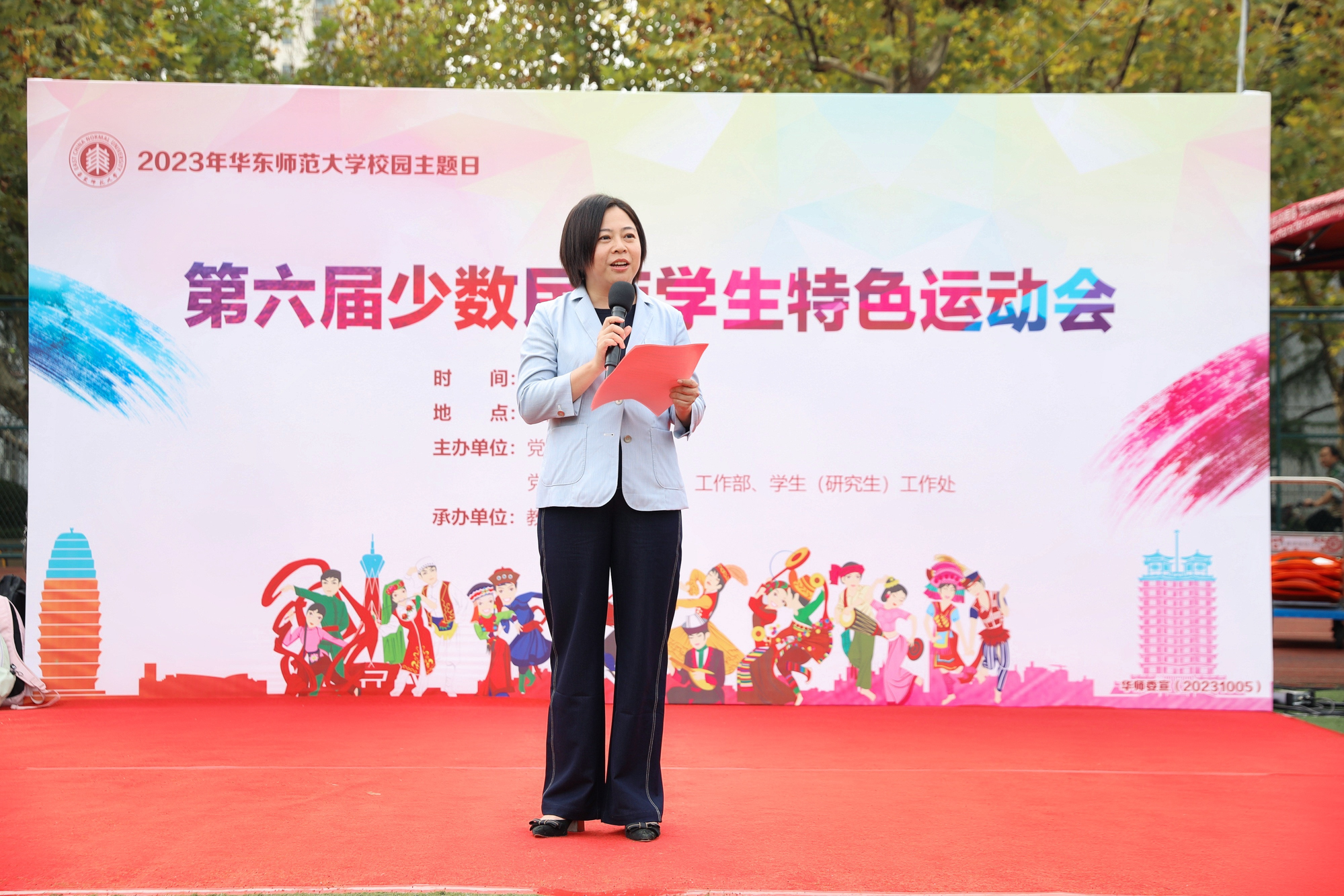 为深化民族团结进步教育,进一步营造“健康学习、健康生活、运动校园”的校园文化氛围,展现各民族学生团结奋斗、共创未来的使命担当,10月25日下午,完美网页版第六届少数民族学生特色运动会在普陀校区共青场举行。校党委常委、副校长程静,校党委常委、统战部部长兼学校办主任张惠虹,以及统战部、学生工作部、后勤保障部相关负责人出席运动会。本届运动会由教育学部承办,吸引了来自各院系、书院的400余名学生参与。