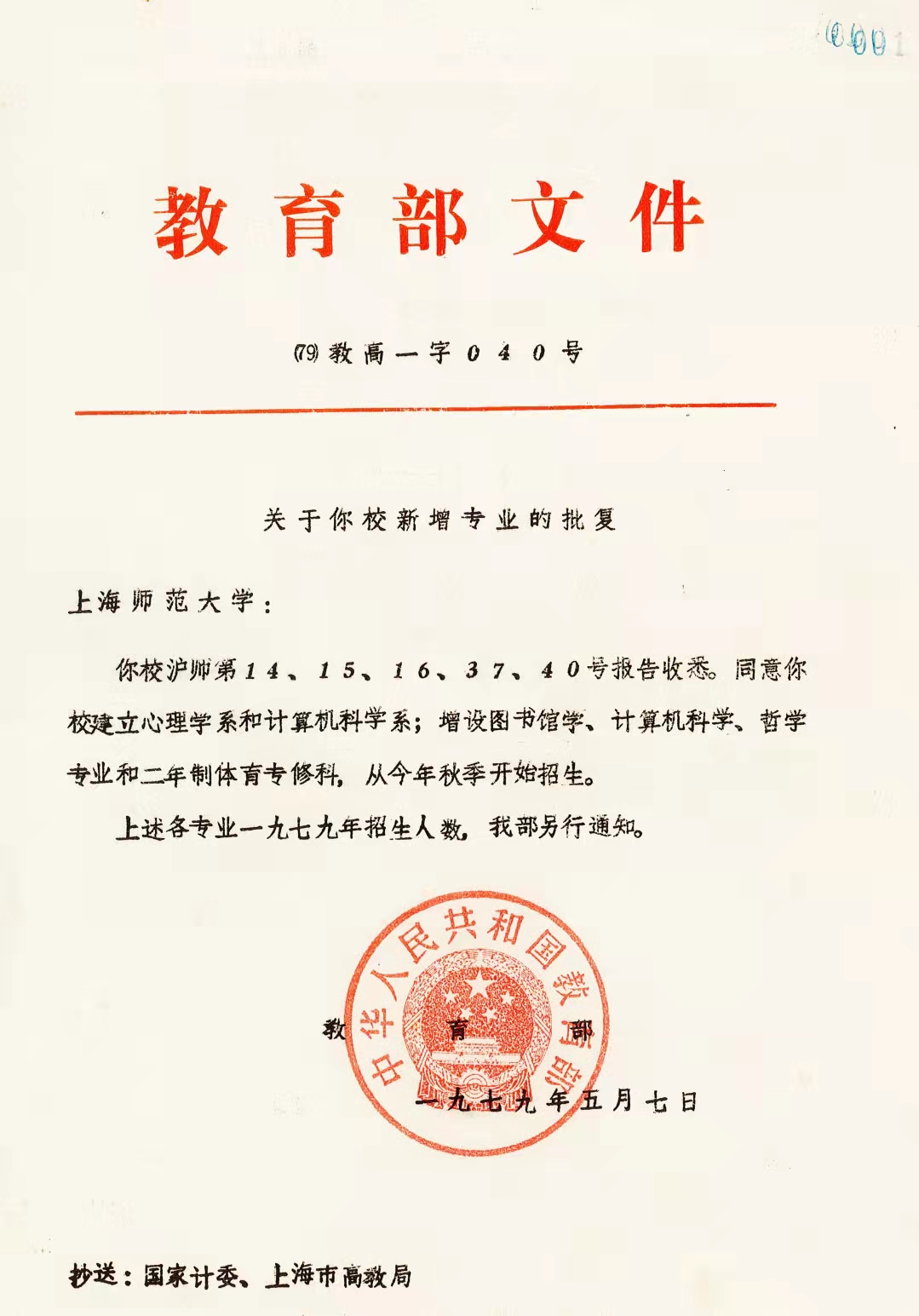 1979年5月7日,教育部批准新建心理学系