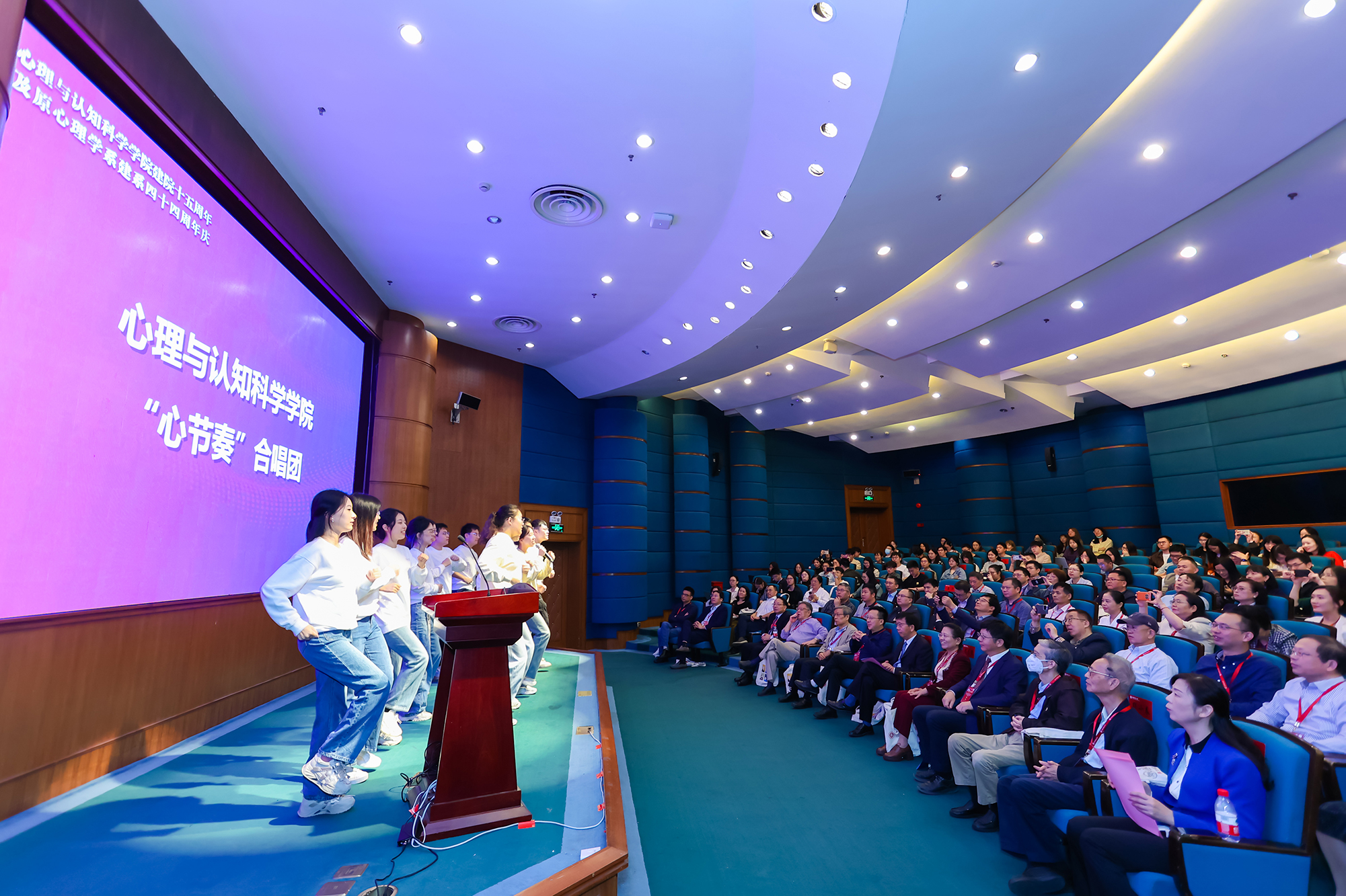 以歌声遇见最美好的时光,来自心理学院的“上海市青年五四奖章集体” ——“心节奏”合唱团,为此次大会献唱了《Try everything》和《思念》。在充满活力的歌声中,心院学子对学院成立15周年送上最青春的祝福!