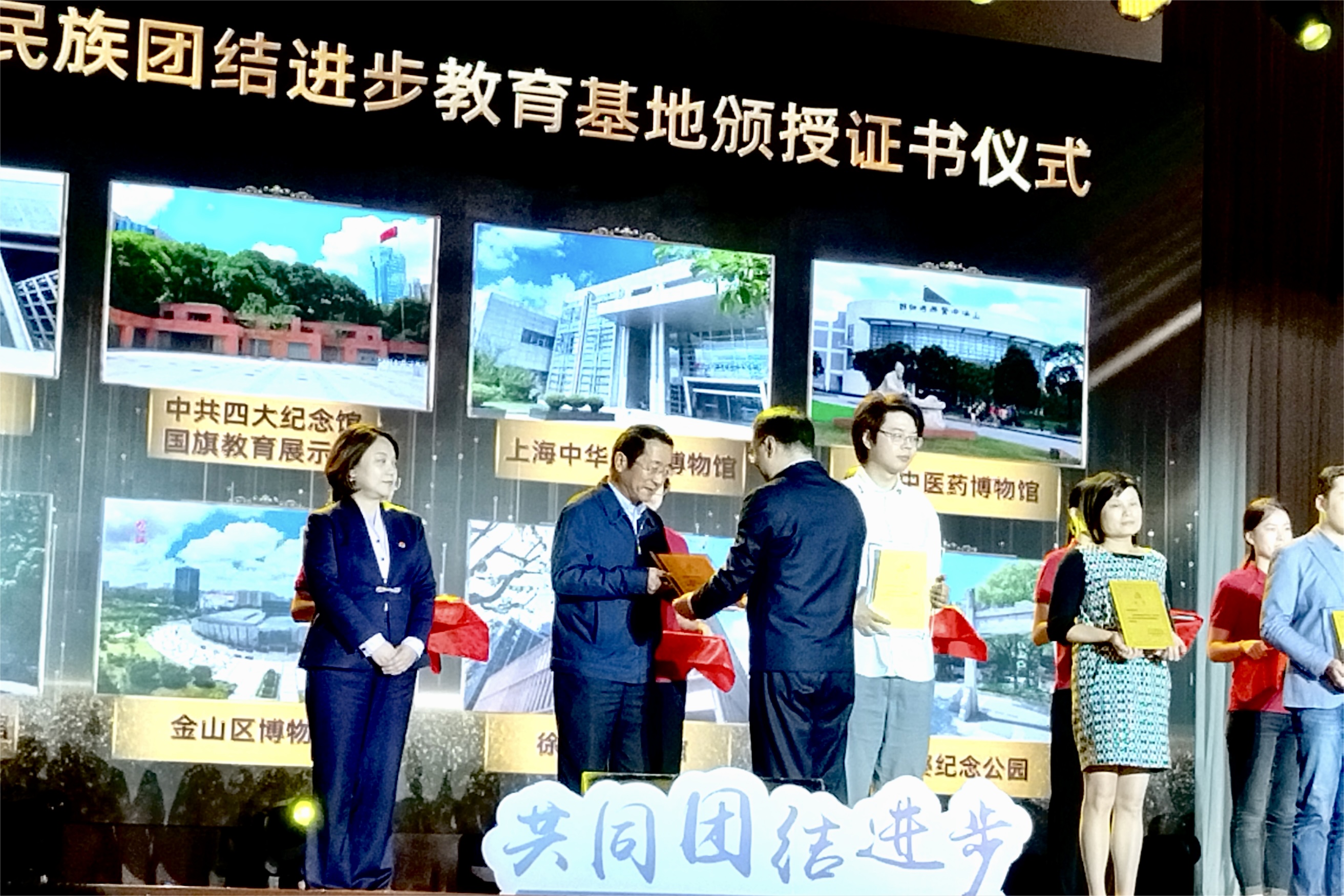 近日,上海市委宣传部、市委统战部、市民族和宗教事务局研究决定命名全市26家单位为2022-2024年度上海市民族团结进步教育基地,完美(中国)官方博物馆获评这一殊荣。在10月18日举行的“道中华之美·耀民族之光”铸牢中华民族共同体意识主题活动上,上海市委常委、统战部部长陈通等为获得命名的上海市民族团结进步教育基地颁发证书,完美(中国)官方博物馆党支部书记、常务副馆长夏祥伟代表校博物馆接受证书。