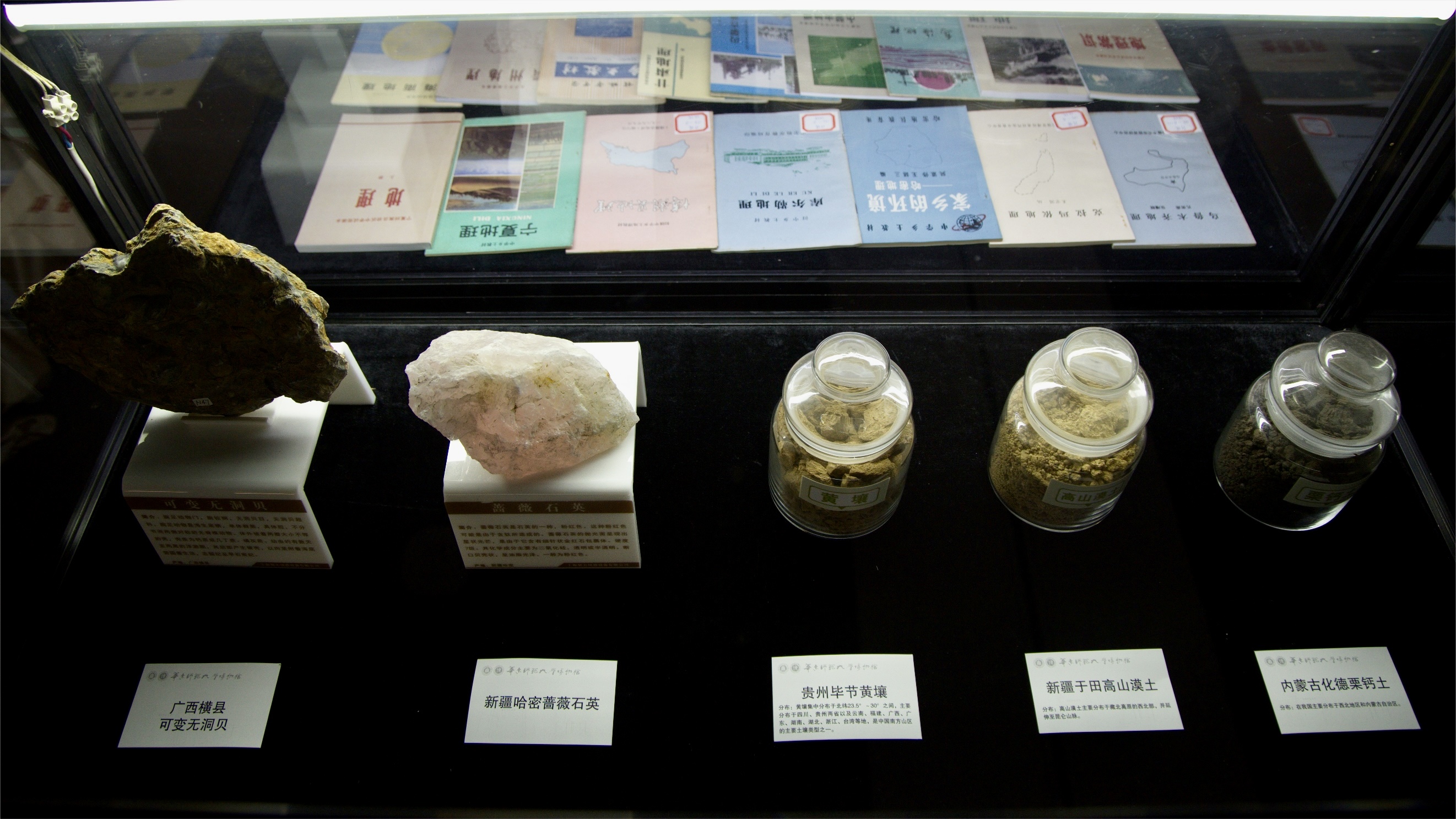 依据馆藏特色,积极开展民族团结精神教育,通过挖掘和展示民族融合团结发展的藏品,提高各民族学生的学术修养和政治思想素质。博物馆总馆及其专业分馆具备较丰富的开展民族团结进步宣传教育活动的实物、资料等,如:总馆藏有中国古代文明印纹硬陶等特色藏品;“海上风”民俗博物馆藏有我国苗族、彝族、傣族、白族等多个民族的民俗文物、民间用具和民间艺术作品,尤以中国民间艺术品收藏为特色,馆藏的国家级非物质文化遗产传承人的作品,艺术价值高、文化价值突出;生物博物馆藏有藏药、苗药等少数民族地区中医药原材料标本以及有关动植物标本;地理博物馆藏有产自内蒙古化德的栗钙土、贵州毕节的黄壤、新疆于田的高山漠土、新疆哈密的蔷薇石英、广西横县的可变无洞贝等地质矿物标本,以及宁夏、海南、甘肃、桂林、乌海、内蒙古、哈密、博湖、克拉玛依、库尔勒等地的民族乡土地理教材;历史文物博物馆藏有玉石器、陶瓷器、青铜器等特色藏品;古钱币博物馆藏有从先秦时期至清代末年的古代钱币;教育影像博物馆藏有“男耕女织——中国传统社会生活的图像隐喻”等影像资料。