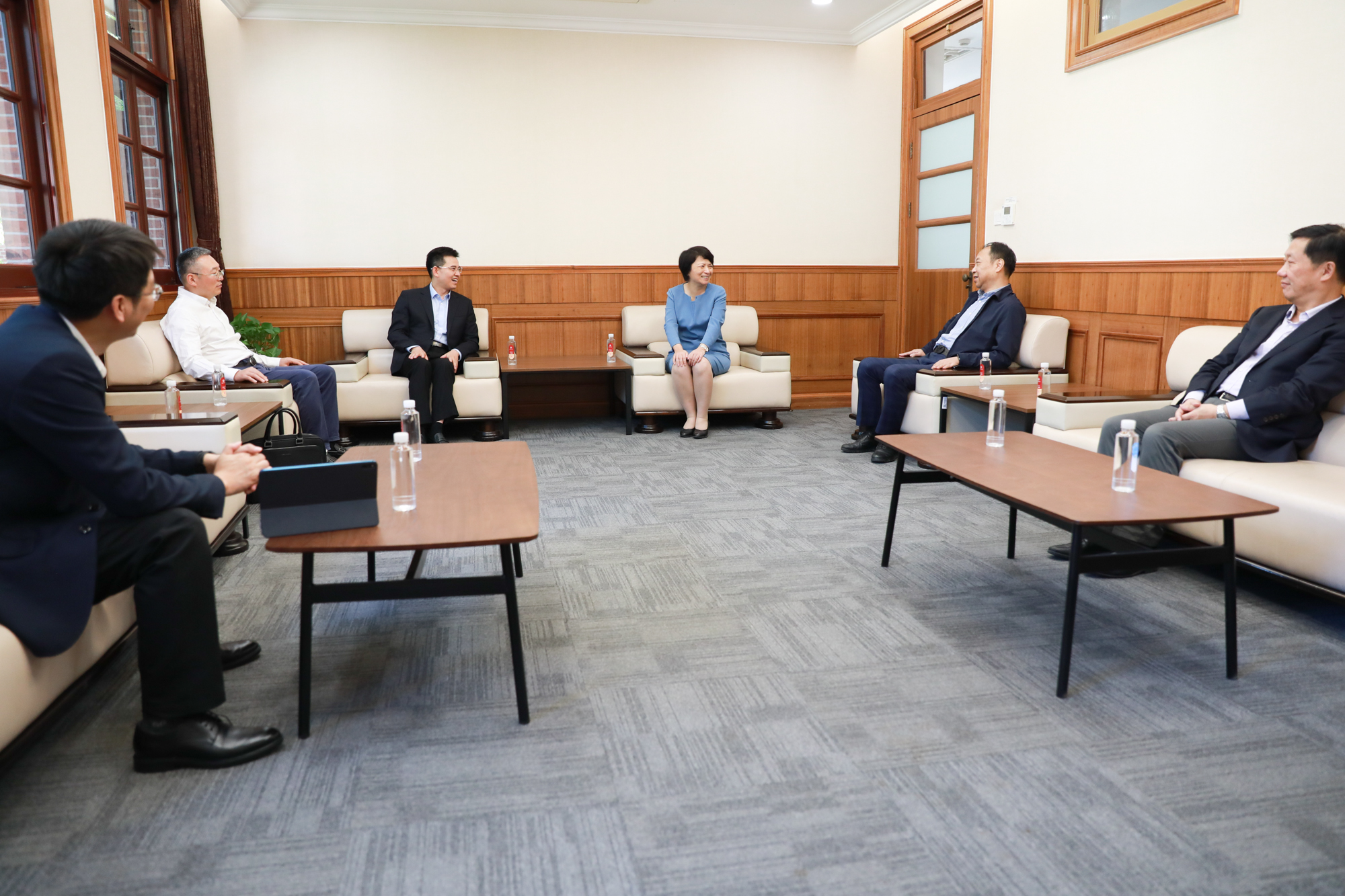 会前,完美(中国)官方党委书记梅兵会见平湖市委副书记、市长周军波,副市长戴建忠一行。