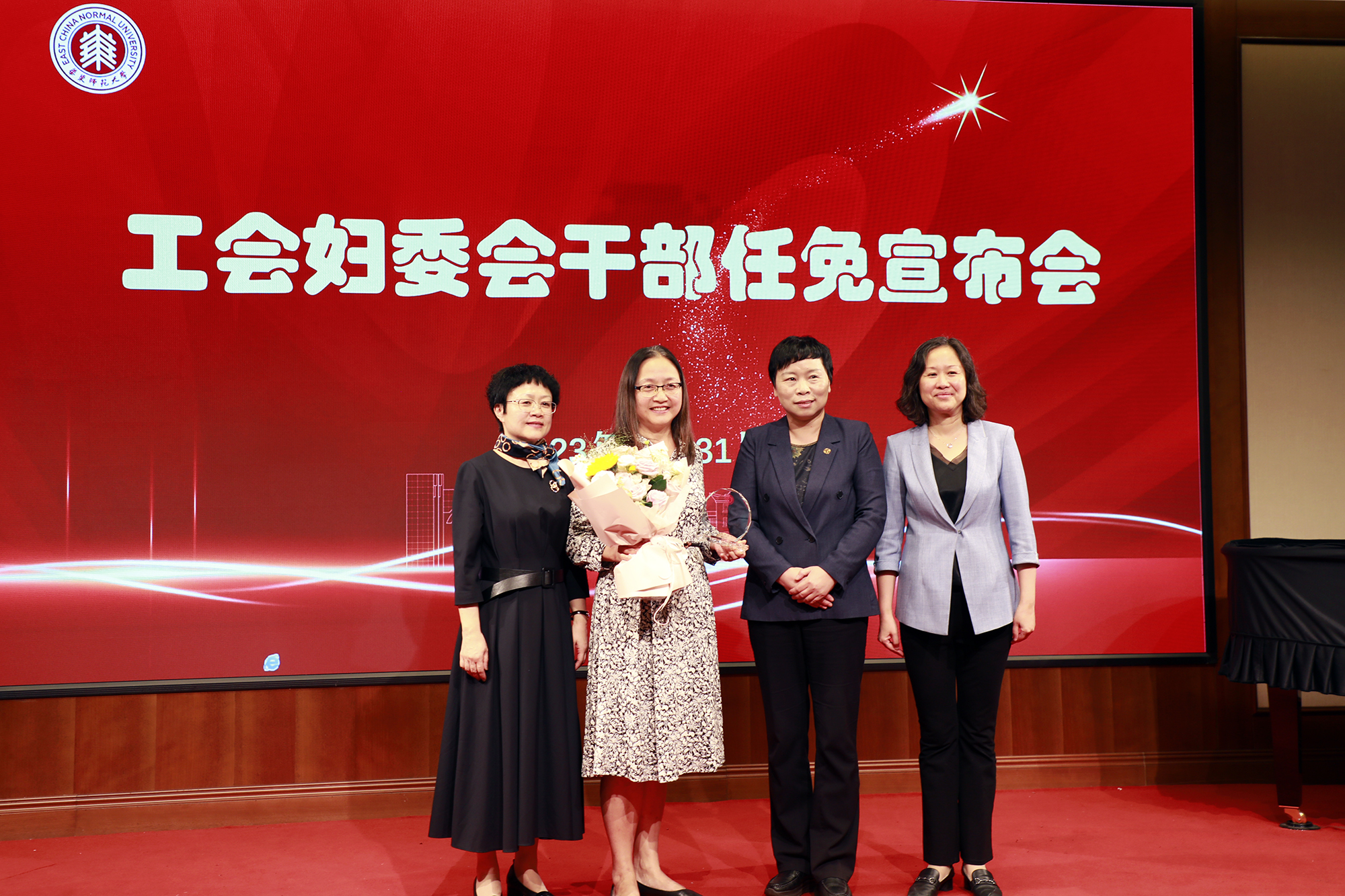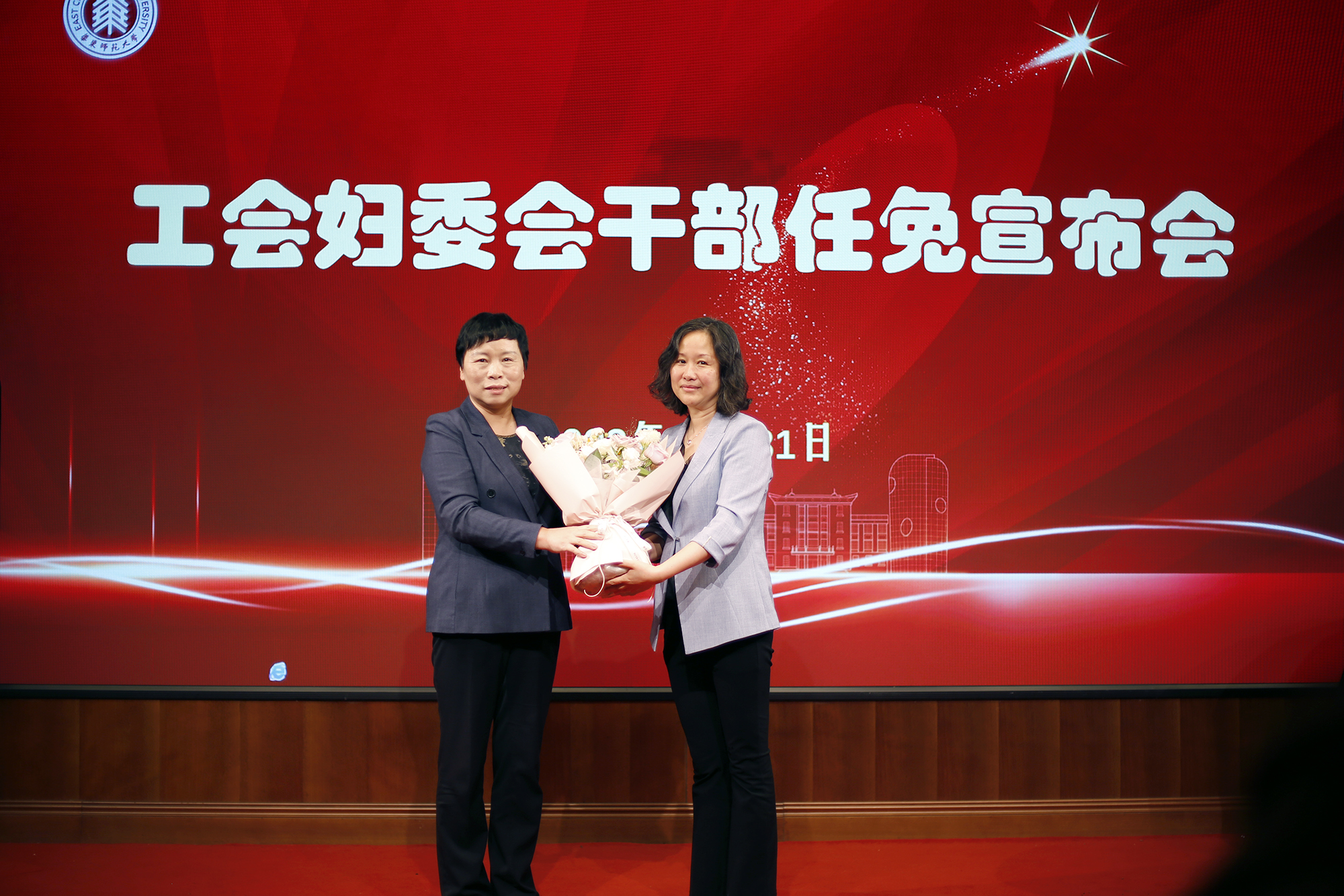 朱军文首先宣读了学校有关决定和上级相关批复,程静同志兼任校工会主席、妇女委员会主任,房建军同志担任校工会常务副主席;杨昌利同志不再兼任校工会主席、妇女委员会主任职务,王平同志不再担任校工会常务副主席职务。