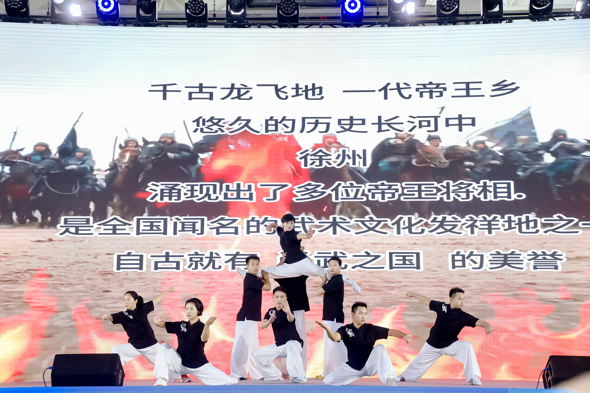 一线体育教师在开幕式上进行中华传统武术表演