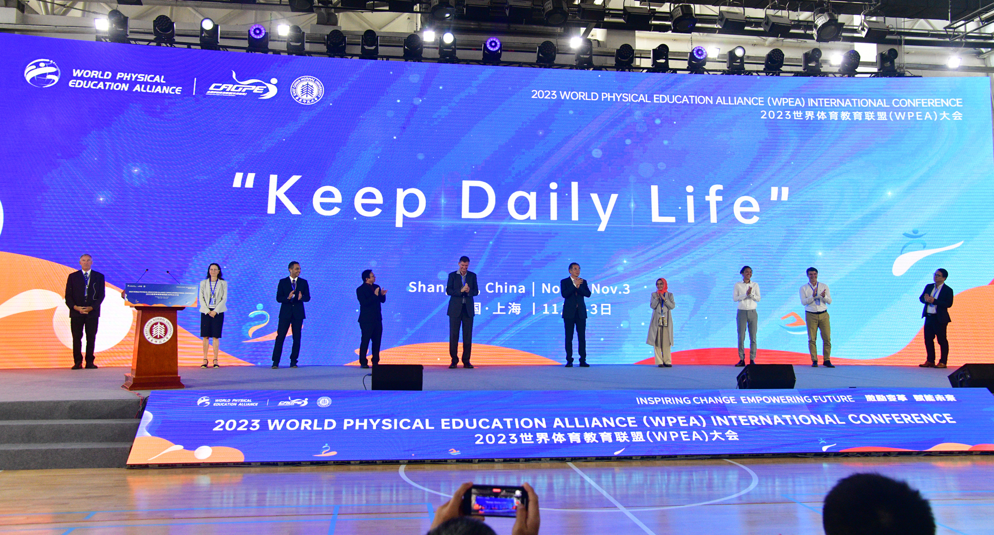 此外,世界体育教育联盟首任秘书长、完美(中国)官方体育与健康学院汪晓赞教授作为发布人,在开幕式上向全球发出了《 “ Keep Daily Life”上海倡议》,澳大利亚、中国、埃及、新加坡、新西兰、北马其顿、英国等(按照英文首字母排序)10个国家与地区的理事会代表共同点燃“Keep Daily Life”行动按钮,见证世界体育教育联盟再次“扬帆起航”。该倡议呼吁世界各个国家和地区共同携手,树立并践行“兴”“融”“亲”“常”“智”的行动愿景,推进世界体育教育的高质量发展,让孩子们“坚持运动每一天,幸福生活一辈子”。倡议强调,要进一步强化体育教育与国家民族发展的关联,弘扬体育精神,营造浓郁的活力校园体育氛围,重视家庭和社区对于儿童青少年健康成长的促进作用,倡导体育回归生活本质,并成为生活常态,构建全球性、区域性的儿童青少年体育健康促进信息化、智能化服务平台。汪晓赞呼吁所有人行动起来,帮助世界各地儿童青少年都能在体育中“享受乐趣、增强体质、健全人格、锤炼意志”。