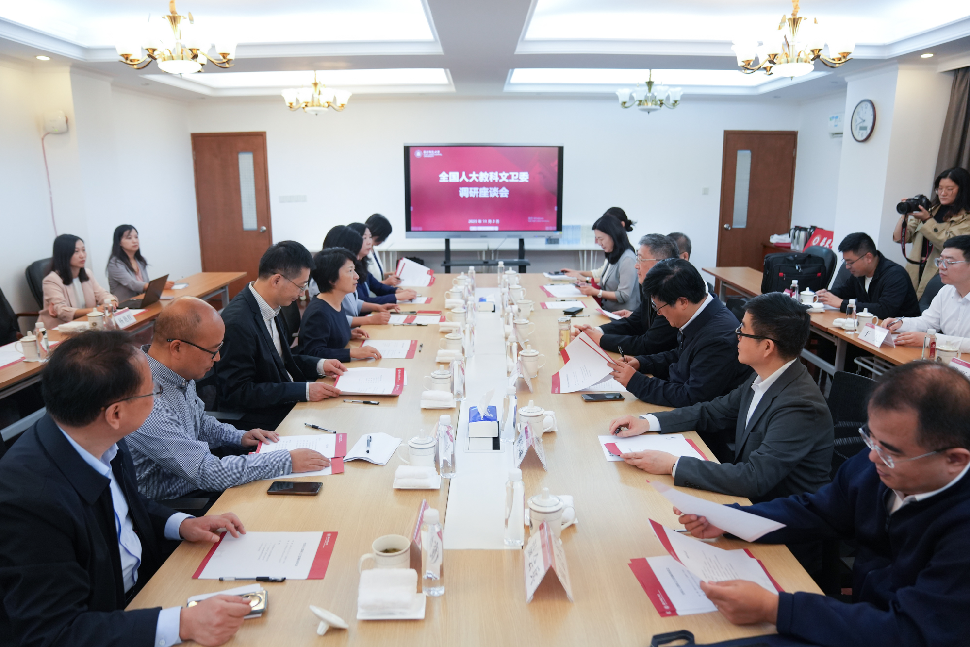 梅兵代表学校向全国人大教科文卫委调研组一行表示欢迎,并介绍了学校基本情况和发展战略。梅兵表示,学校近年来不断优化学科布局,发挥教师教育和文理基础学科优势,持续推进学科交叉融合,加快人才培养改革创新,着力培育自由而全面发展的卓越学生,更好地服务国家战略和社会发展需要。