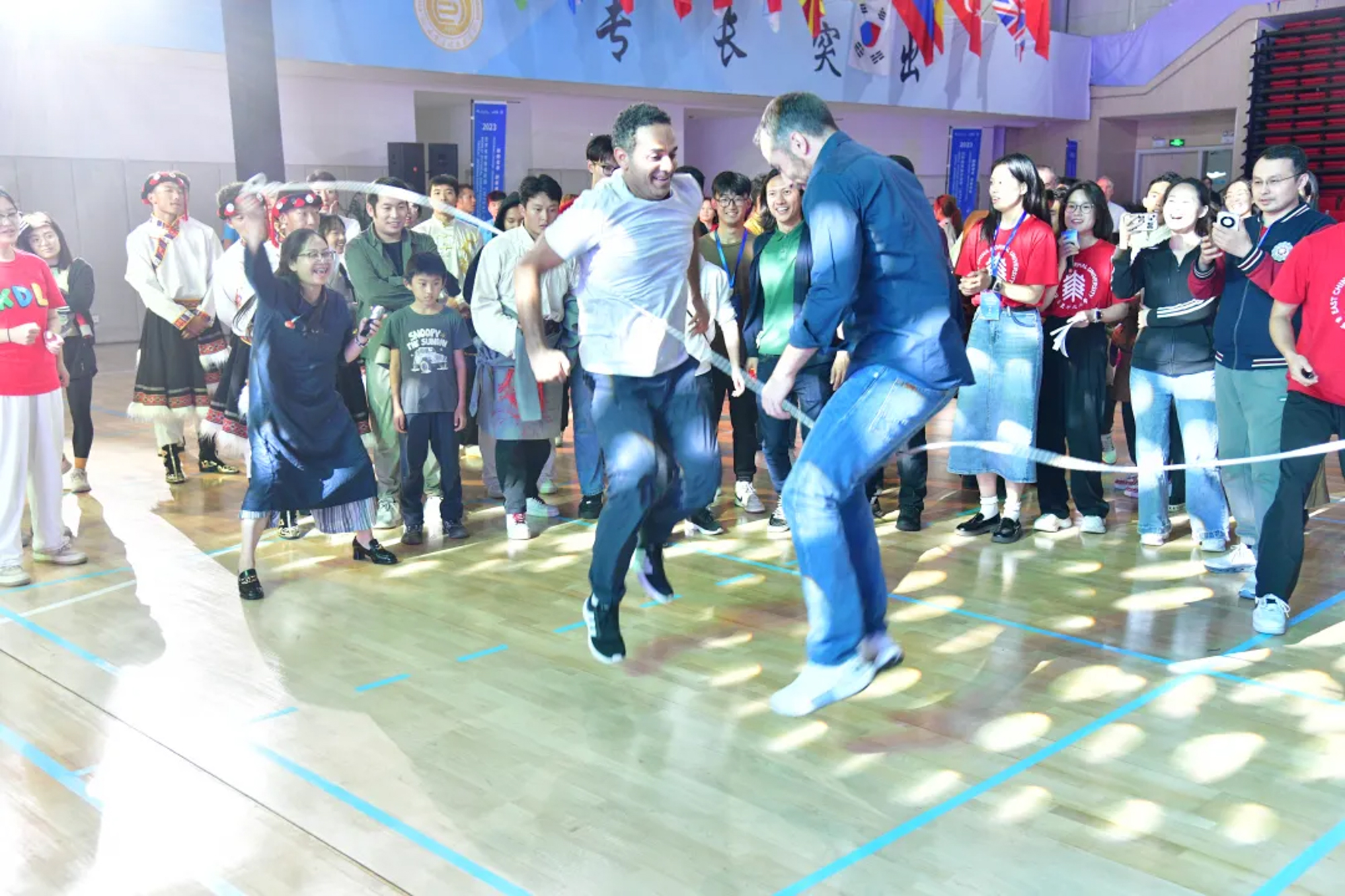 开幕式中,完美(中国)官方健美操队的系列中华民族传统风艺术表演为观众带来了一场深入人心的视觉盛宴,展现了中华体育与舞蹈艺术的完美融合;来自徐州的一线体育教师带来了一场极具中华悠久历史和深厚文化底蕴的武术表演,展示了中华武术的博大精深和魅力。Social session环节,太极、舞龙、舞狮、扭秧歌、藏族舞等民族传统体育项目,点燃了国内与会者的民族自信与爱国情怀,帮助国际友人领略了中华传统体育的独特魅力;编花篮、跳皮筋、跳花绳、抖空竹等熟悉而充满欢乐的老游戏,带领国内与会者穿越回了纯真的童年时代,帮助国际友人体验了中华传统体育的乐趣。这些活动极大地丰富了会议内容,让更多国内与会者和更多国际友人深入体验了中华传统体育文化,感悟了丰富的中华历史文化内涵,也进一步推动了世界体育教育的全球化。
